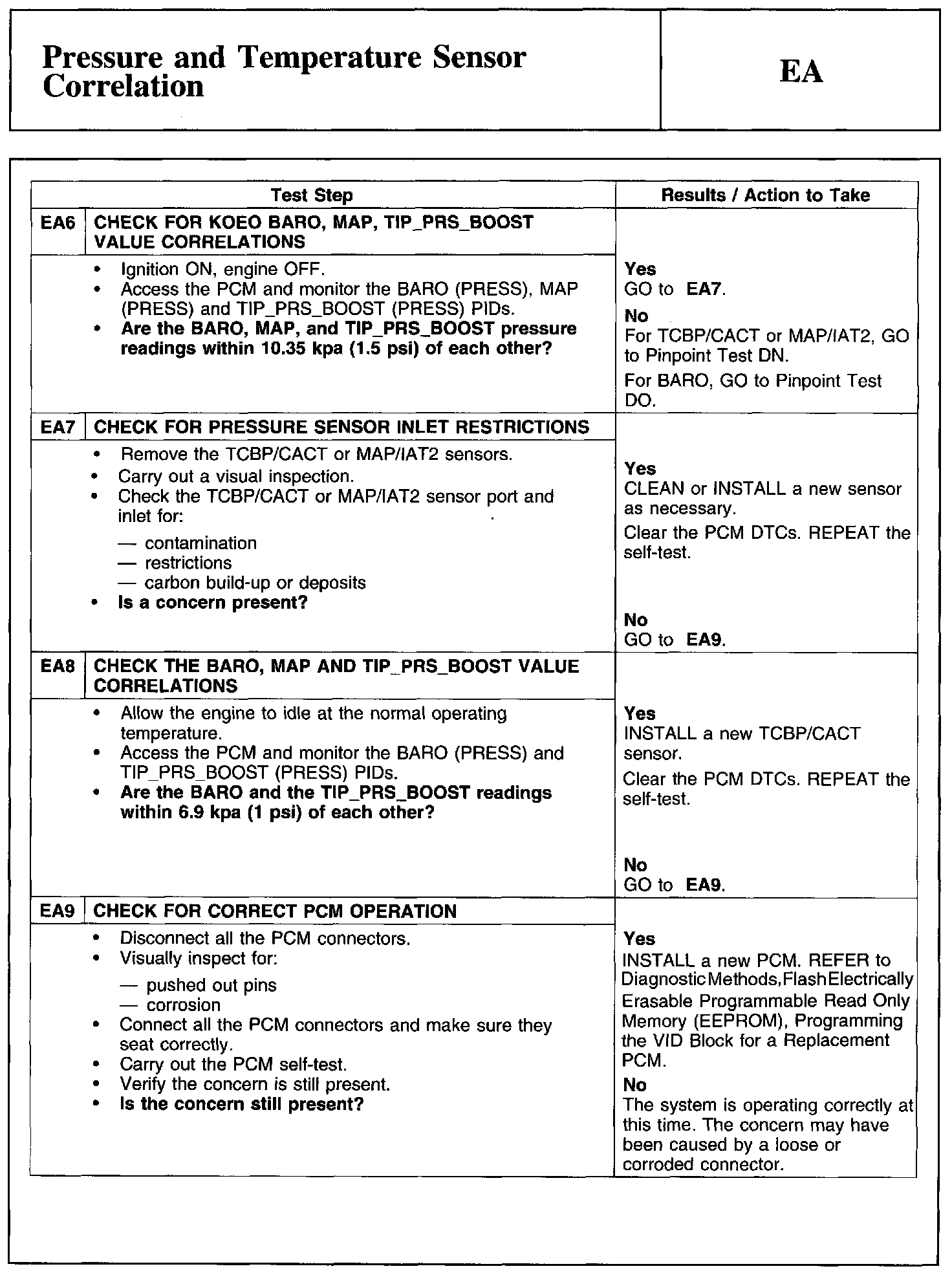 PINPOINT TEST EA: PRESSURE AND TEMPERATURE SENSOR CORRELATION