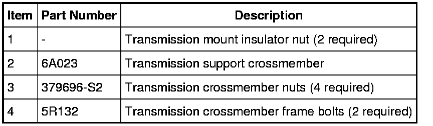 1. For additional information on the transmission support crossmember, refer to Transmission Support Crossmember Transmission Support Crossmember.