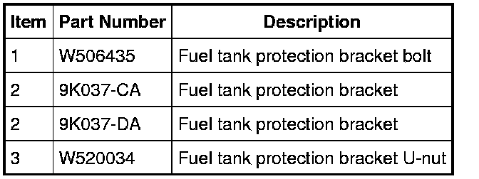 3. For information on the fuel tank protection brackets, refer to Fuel Tank Protection Bracket Fuel Tank Protection Bracket.