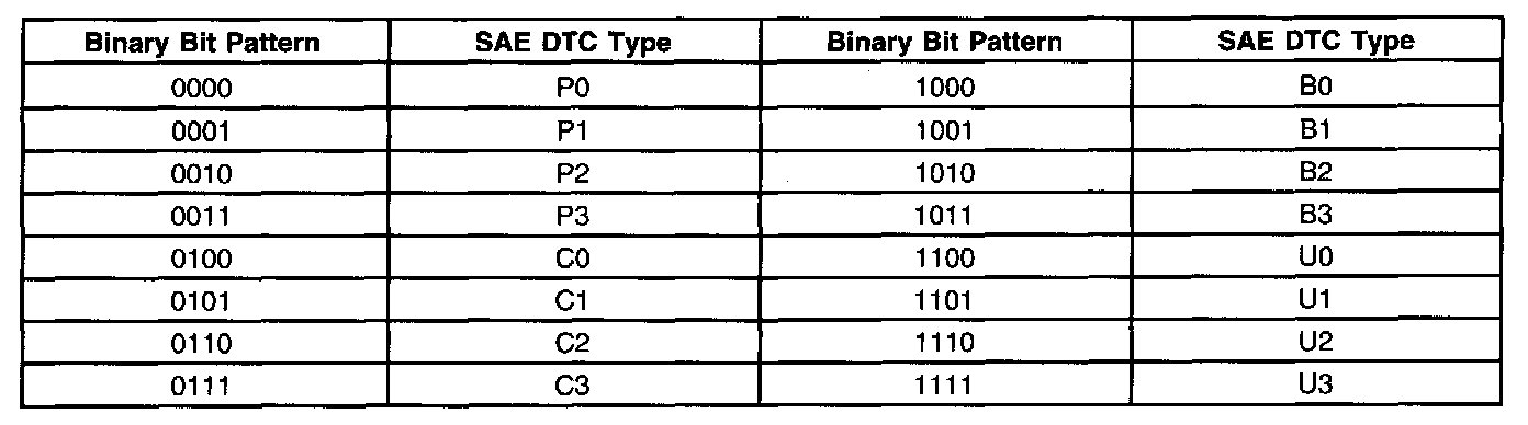 A list of failure type bytes is defined by SAE J2012 but is not described here because the PCM does not use the failure type byte.