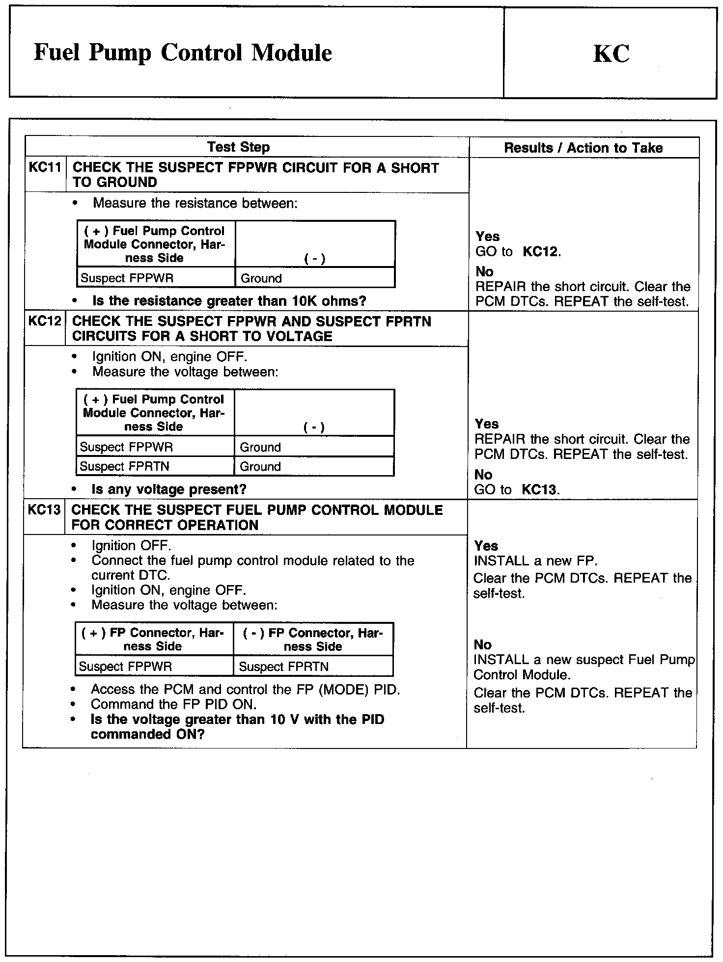 PINPOINT TEST KC: FUEL PUMP CONTROL MODULE