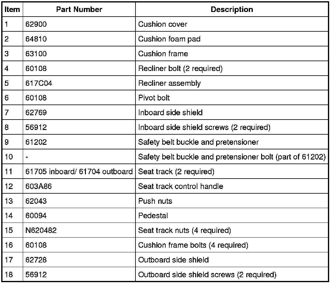 Seat - Exploded View, Front