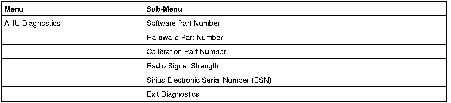 NOTE: The AHU Diagnostics refers to the ACM (Audio Front Control Module) and EFP Diagnostics refers to the Front Controls Interface Module (FCIM).