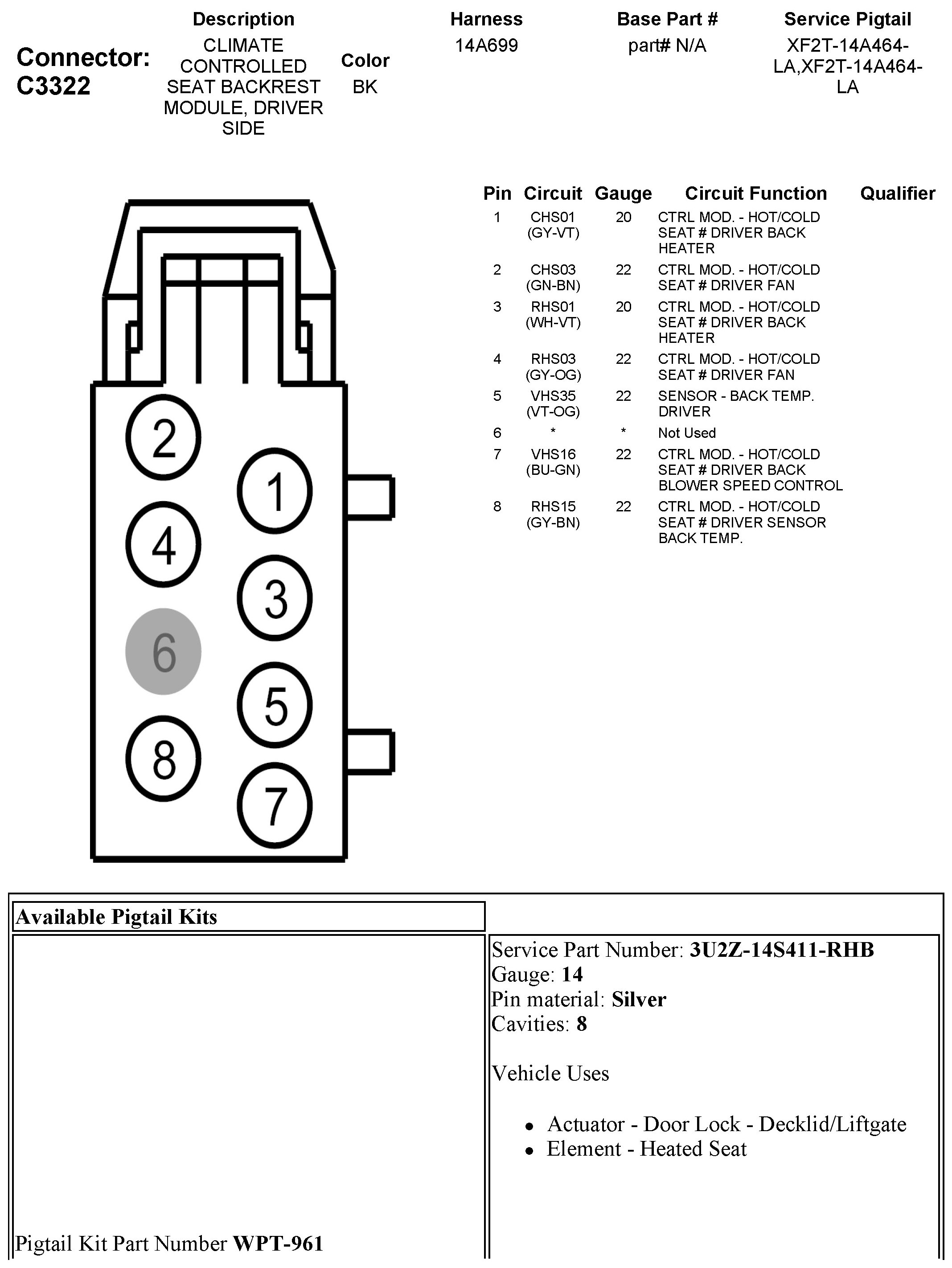 C3322 Climate Controlled Seat Backrest Module, Driver Side