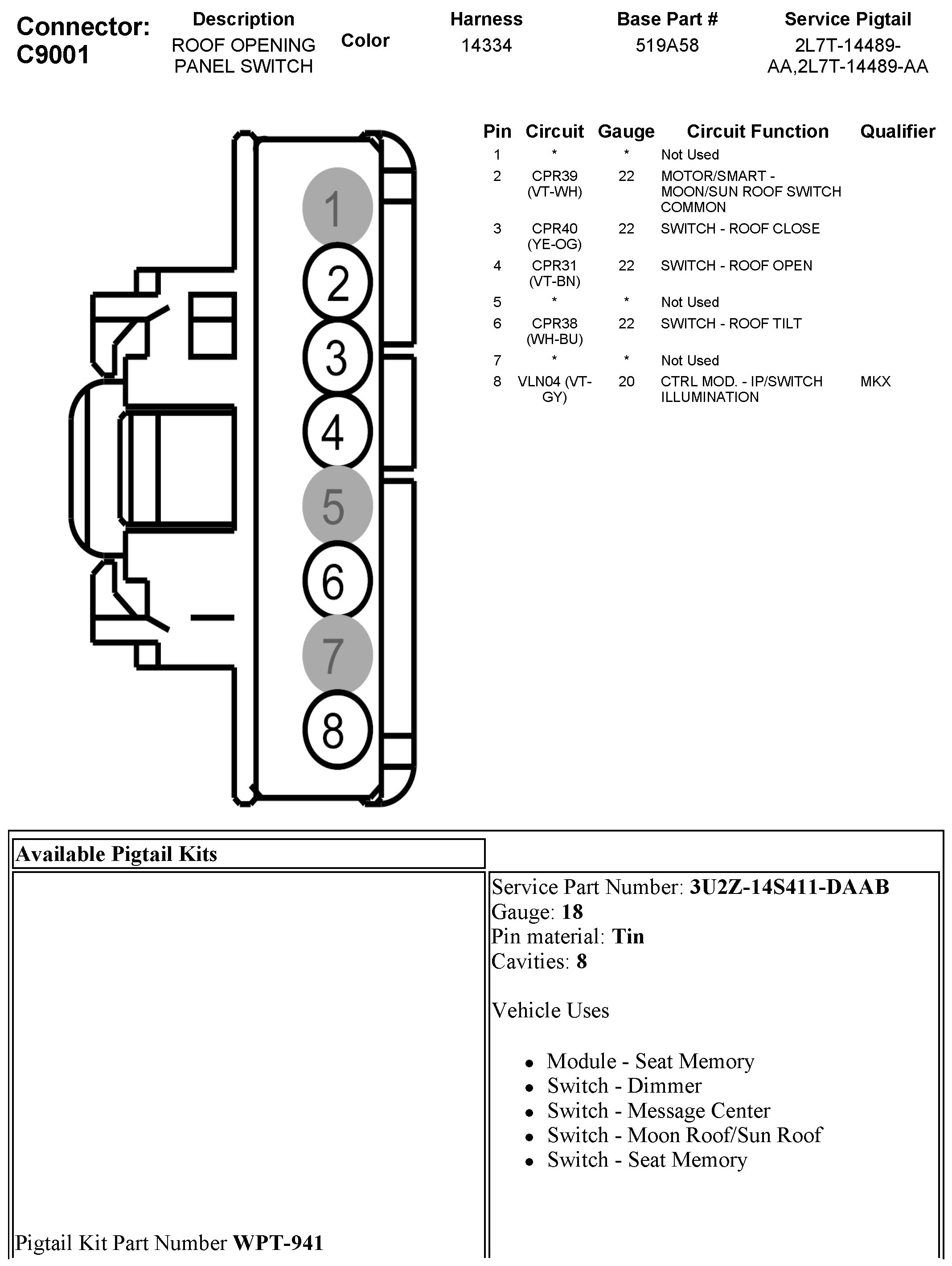 Sunroof / Moonroof Switch