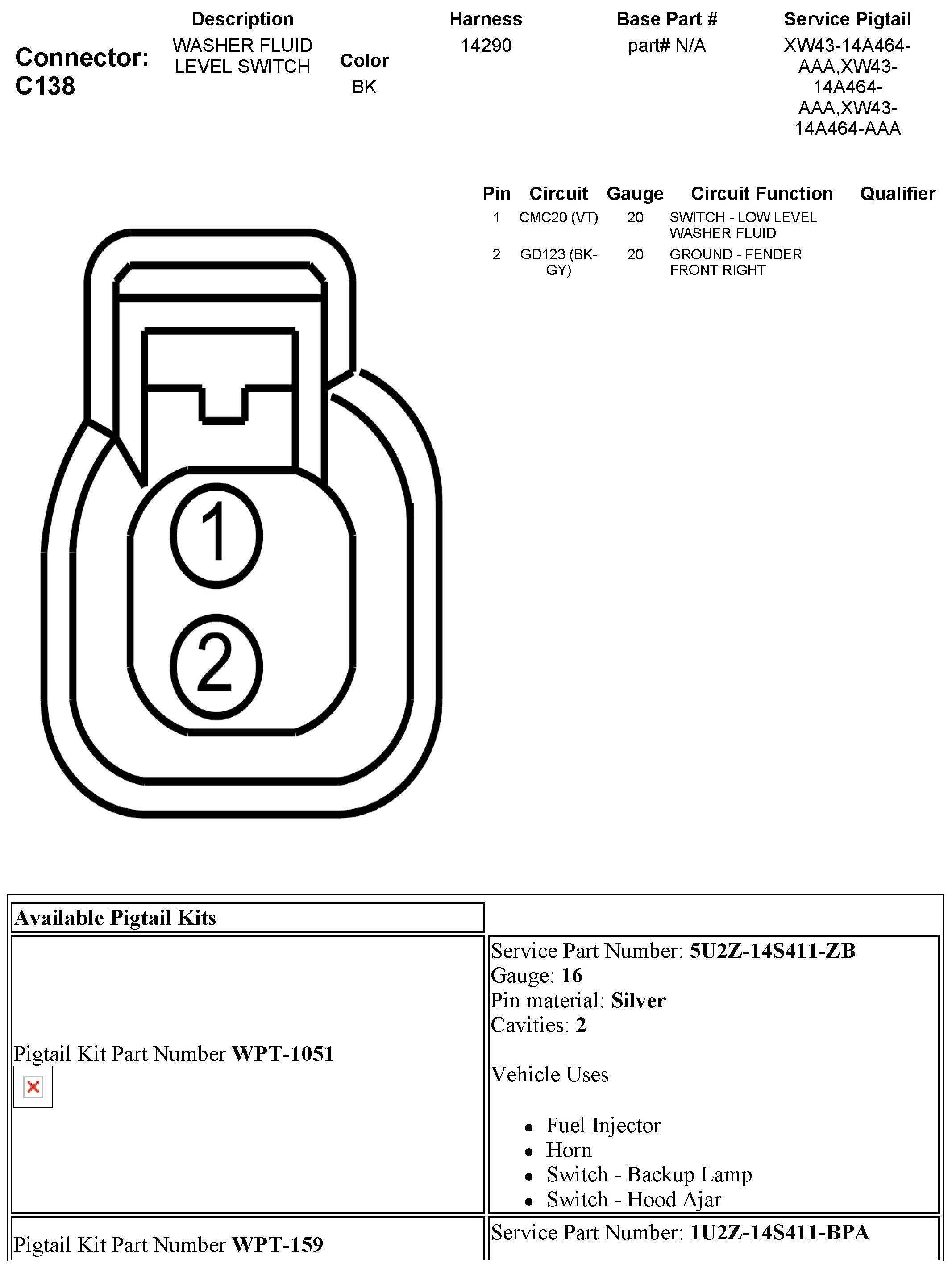 Washer Fluid Level Switch