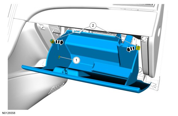 2. Release the stops by pressing them toward the center of the glove compartment while lowering the glove compartment, and remove the glove compartment.