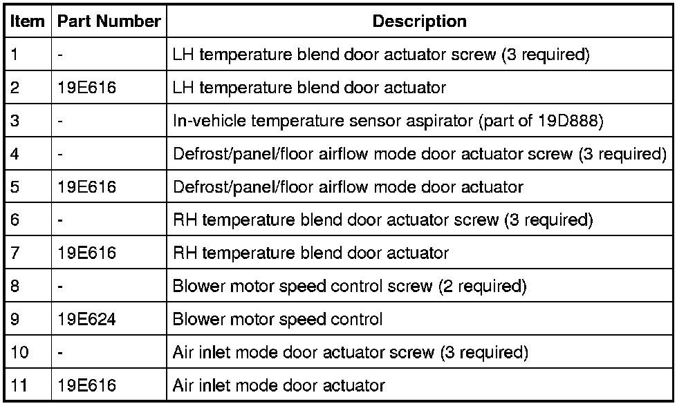 Home >> Ford >> 2011 >> Edge AWD V6-3.5L >> Repair and Diagnosis >> Heating and Air Conditioning >> Housing Assembly HVAC >> Service and Repair >> Control Components - Exploded View