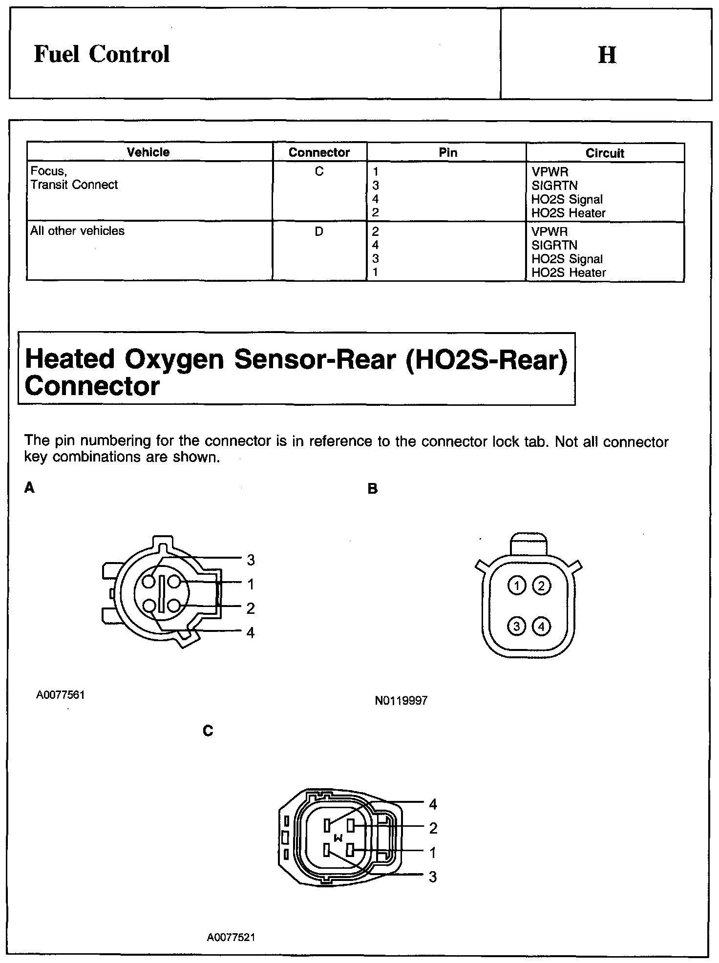 Heated Oxygen Sensor-Front (HO2S-Front) Connector And Heated Oxygen Sensor-Rear (HO2S-Rear) Connector: