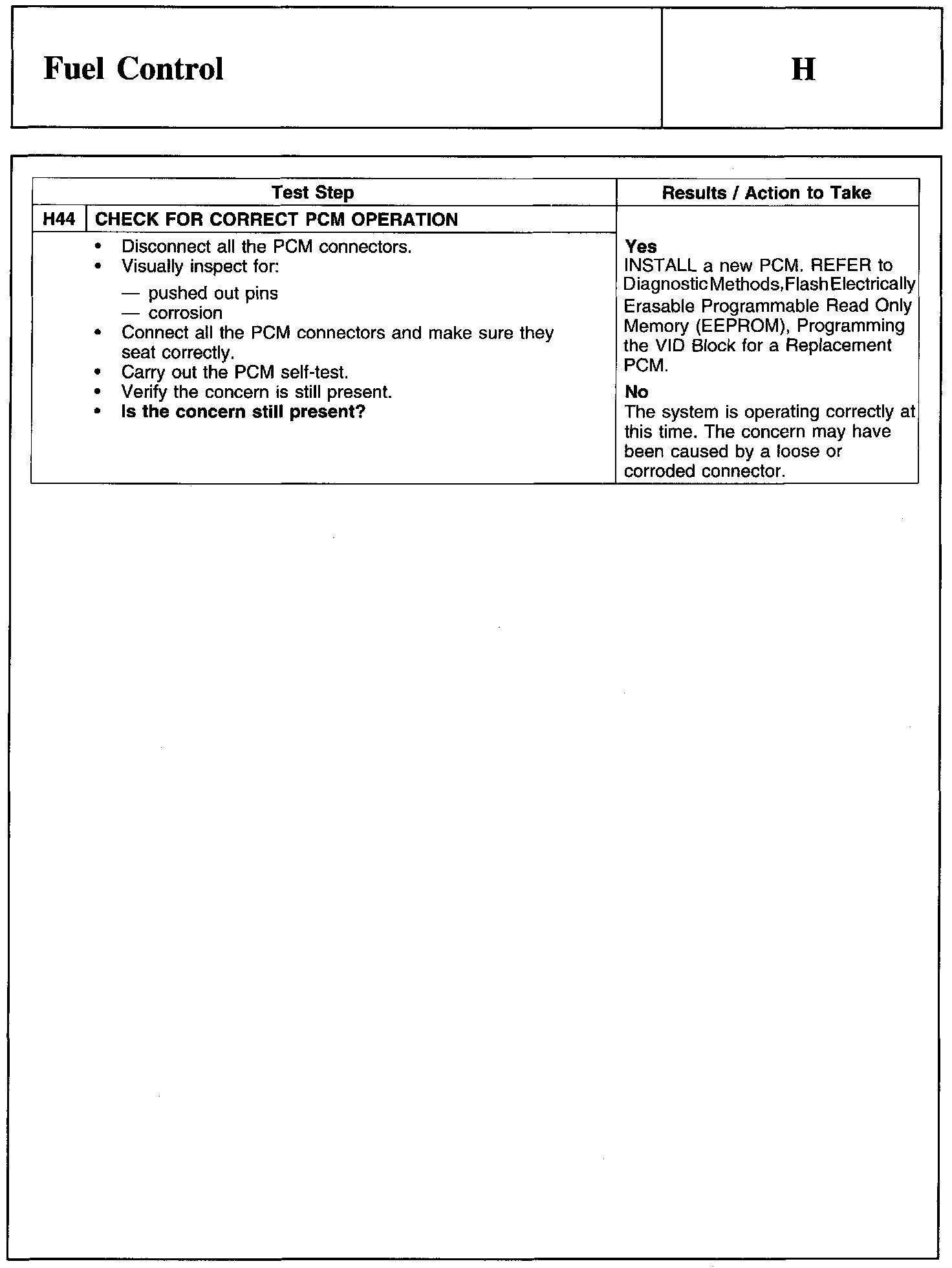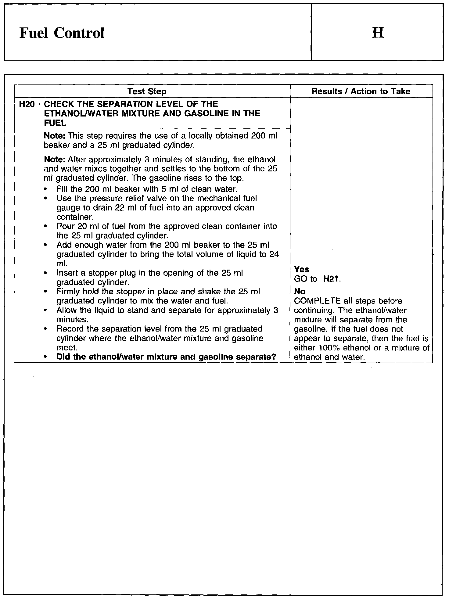 PINPOINT TEST H: FUEL CONTROL