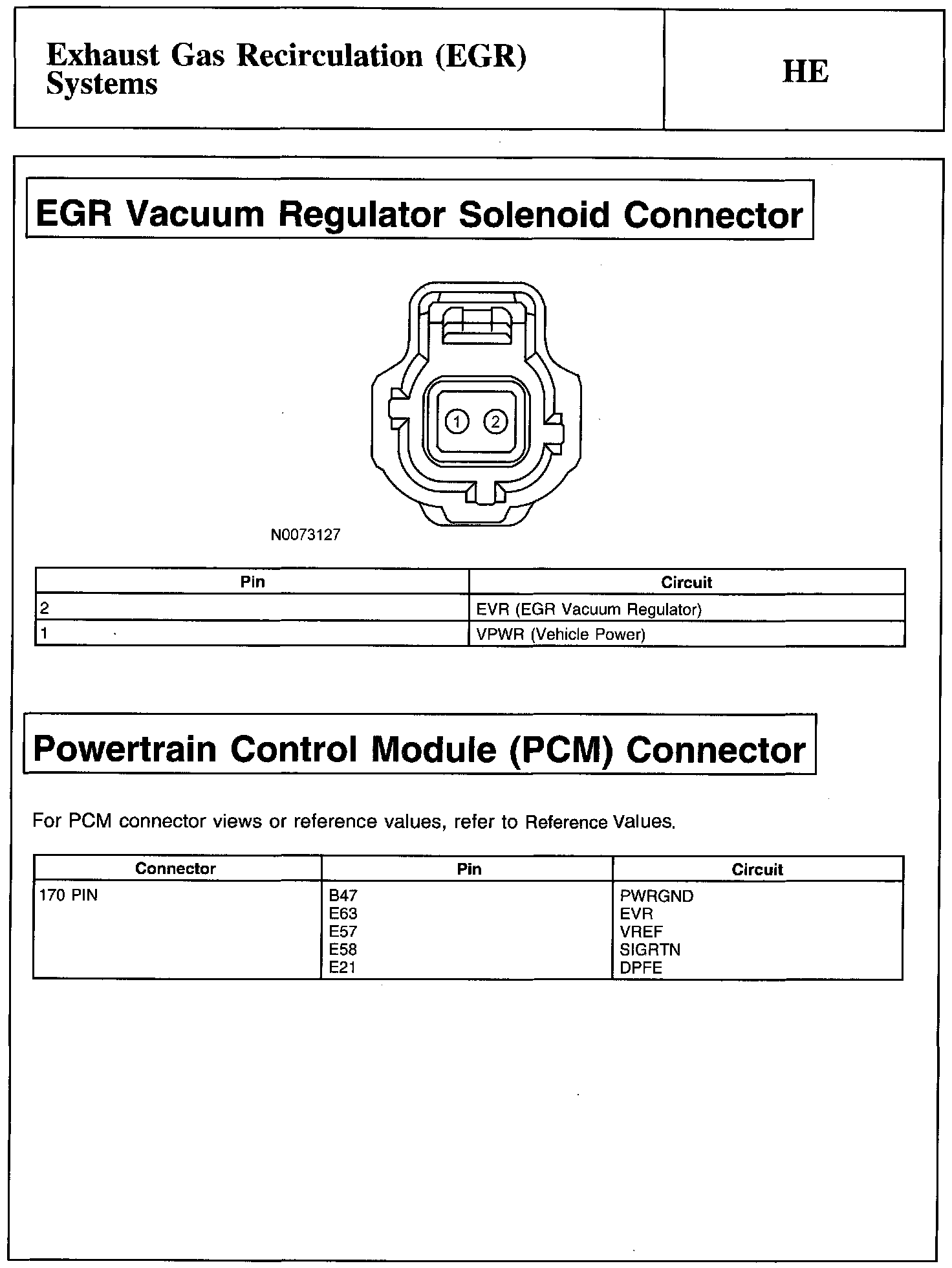 EGR Vacuum Regulator Solenoid Connector And Powertrain Control Module (PCM) Connector: