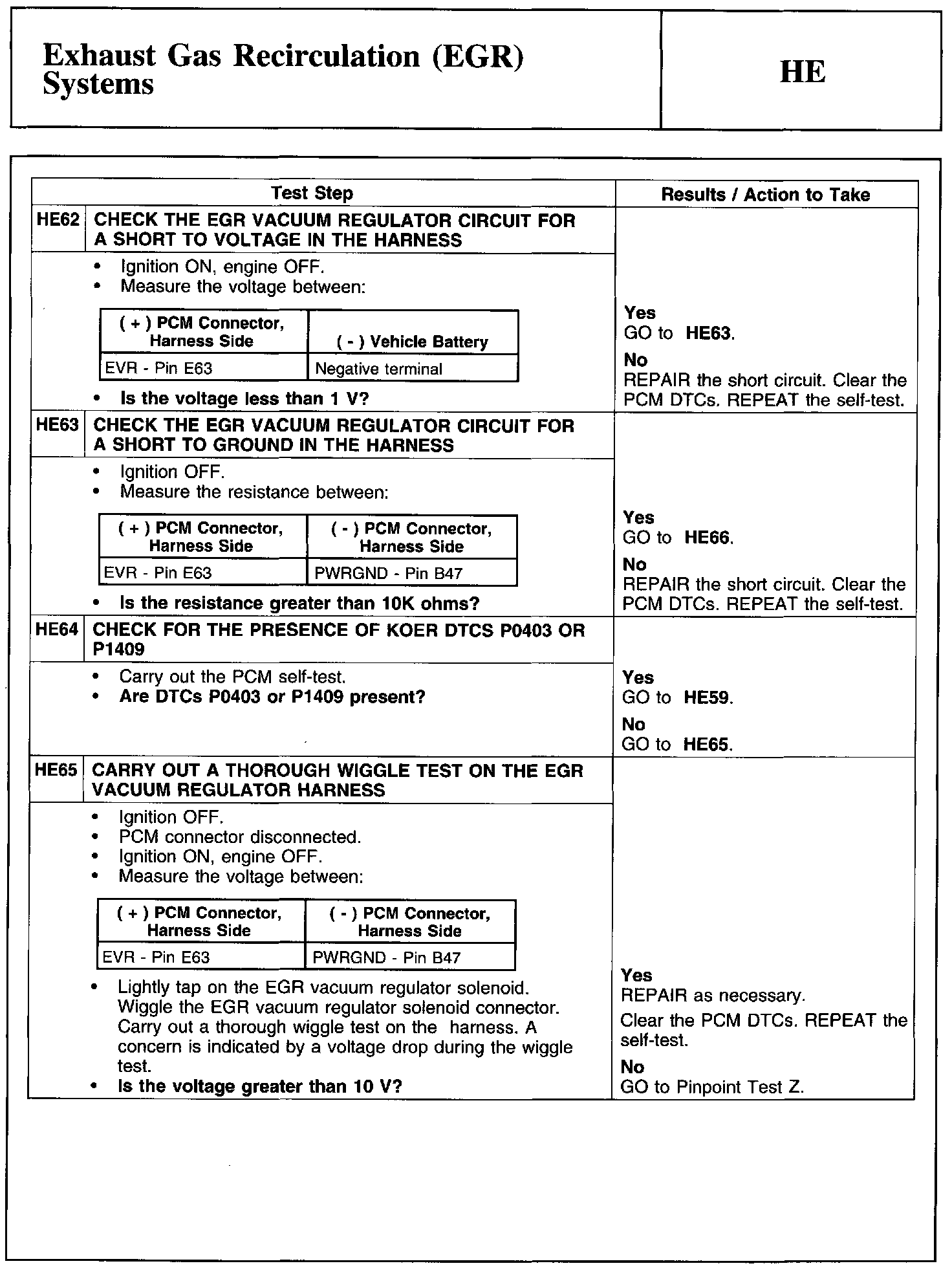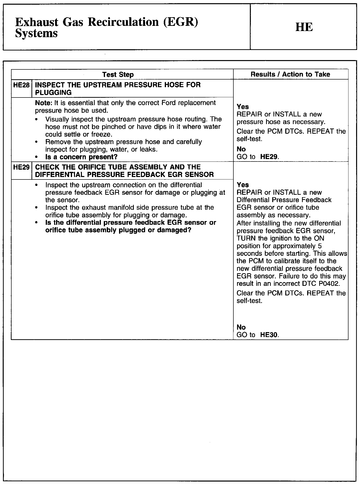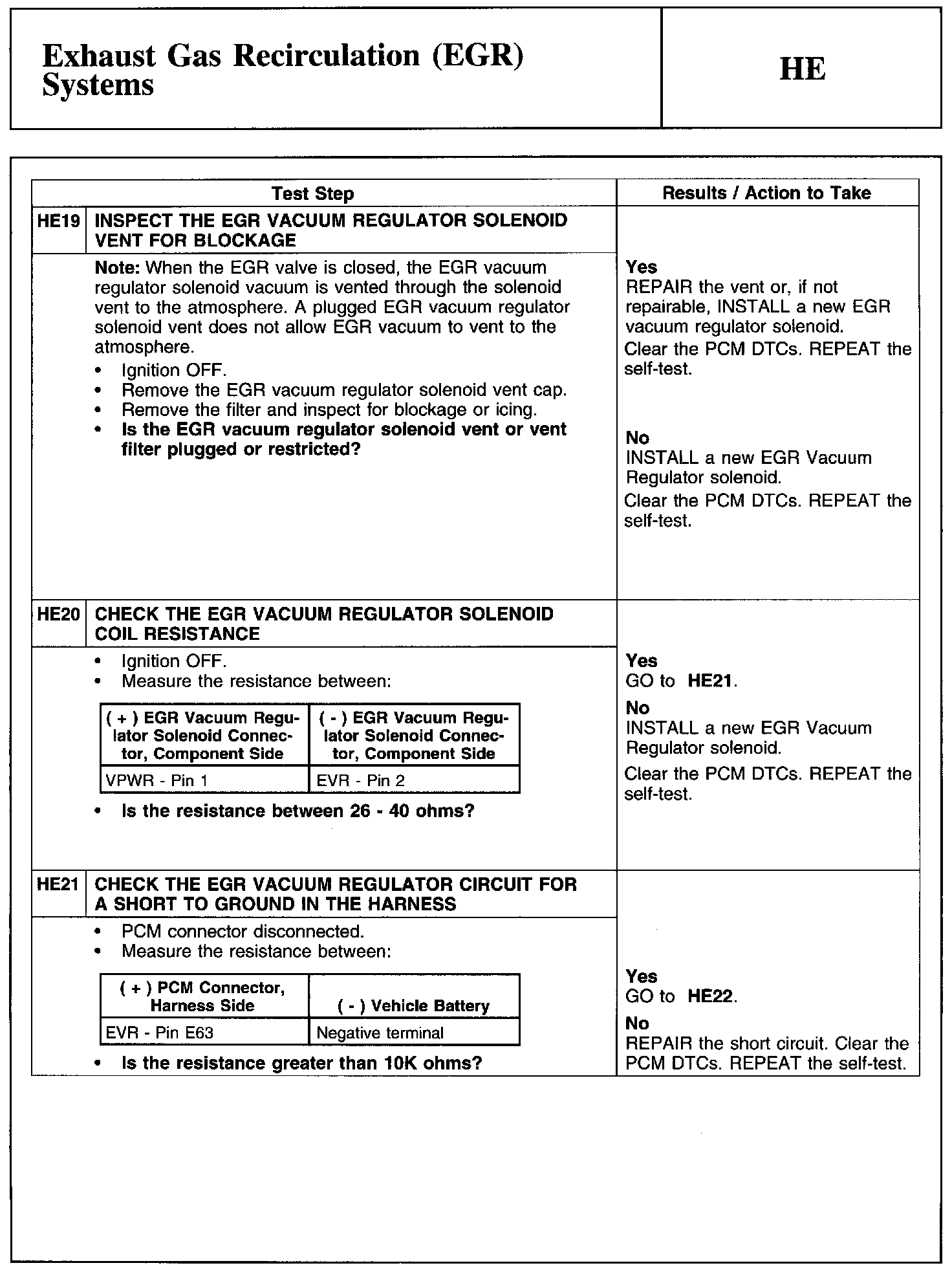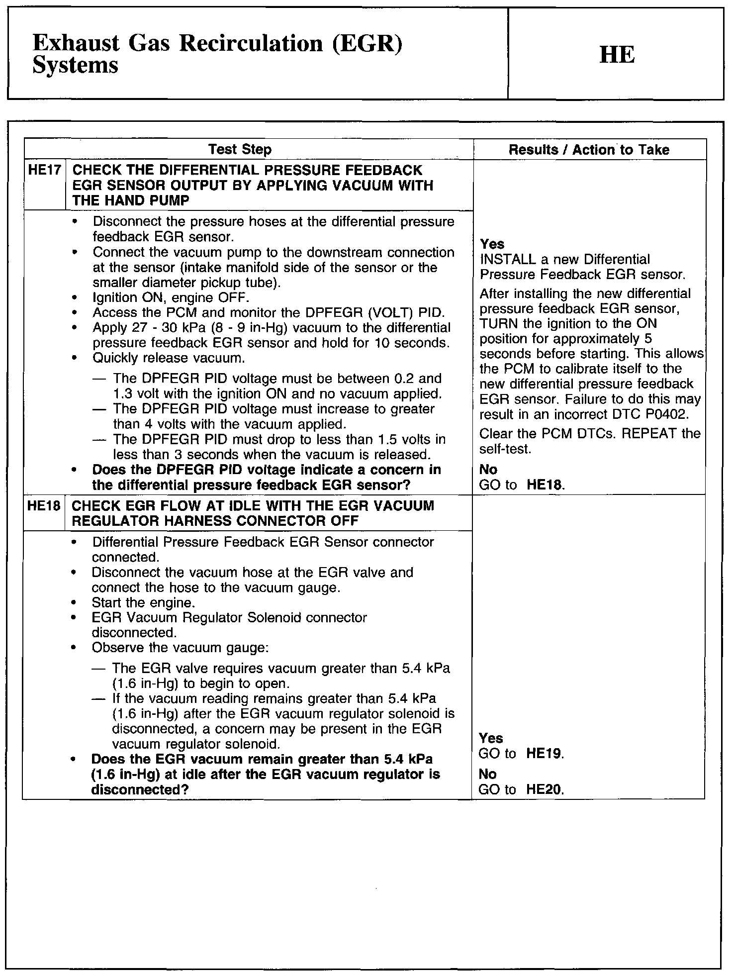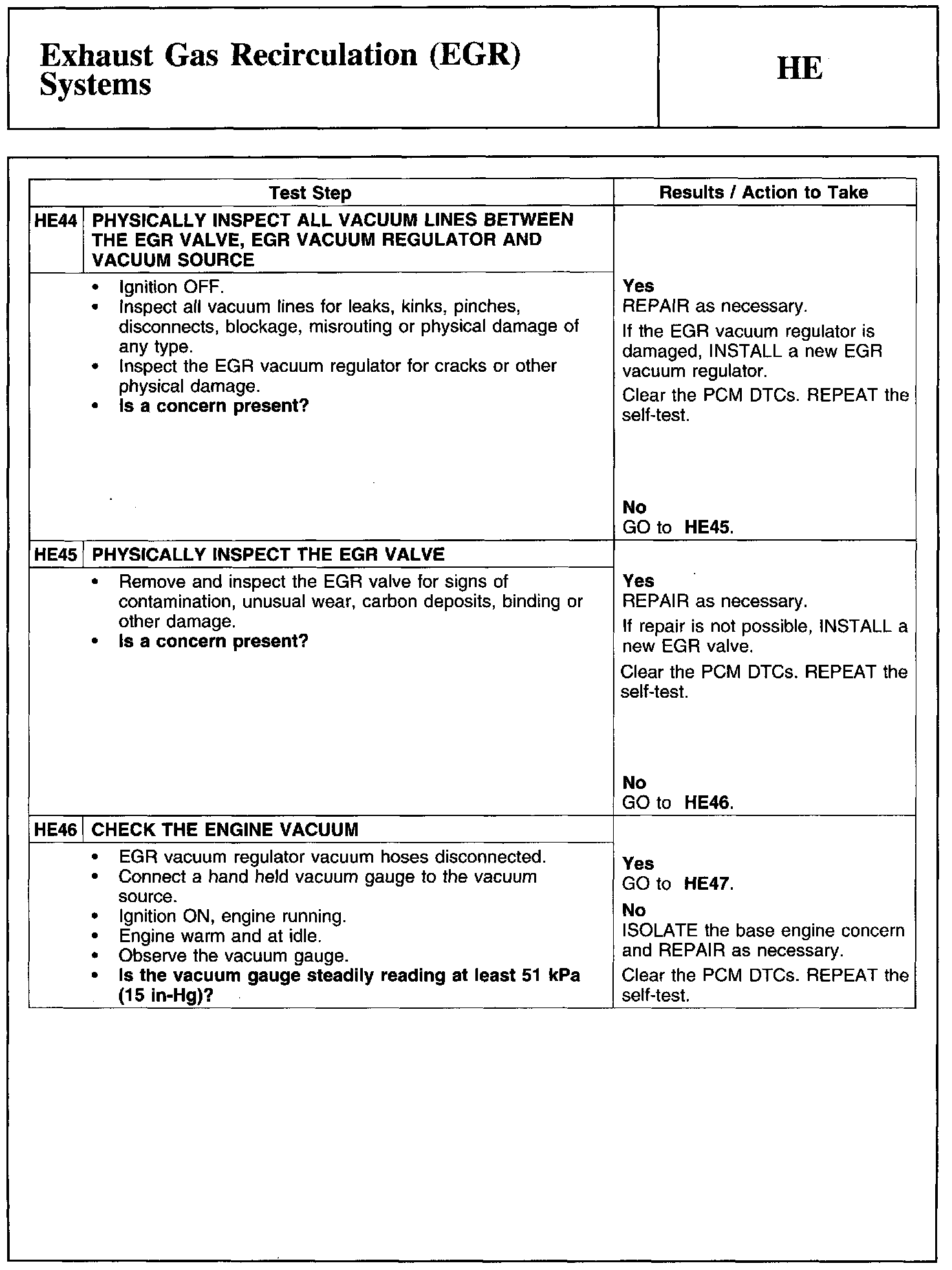Test HE: Exhaust Gas Recirculation (EGR) Systems