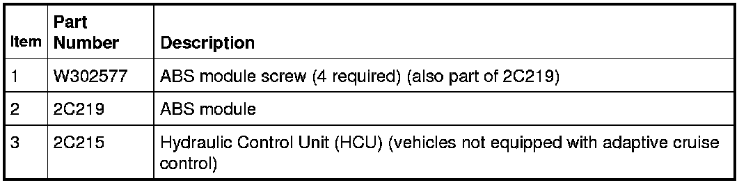 NOTE: On vehicles equipped with adaptive cruise control, the ABS module and Hydraulic Control Unit (HCU) are serviced as an assembly. For additional information, refer to Hydraulic Control Unit (HCU) Service and Repair.