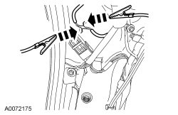 9. Deploy the Safety Canopy(R)/side air curtain module by touching the ends of the 2 wires of the jumper harness to the terminals of a 12-volt battery.