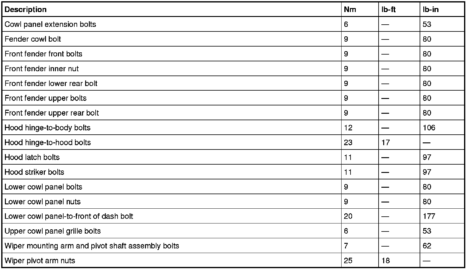 Torque Specifications