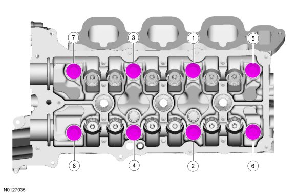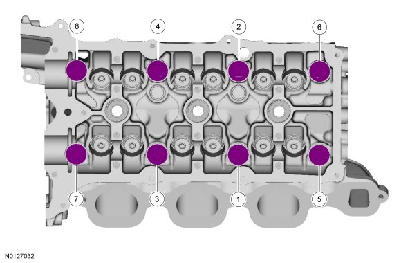Install a new gasket, the RH cylinder head and 8 new bolts. Tighten in the sequence shown in 5 stages: