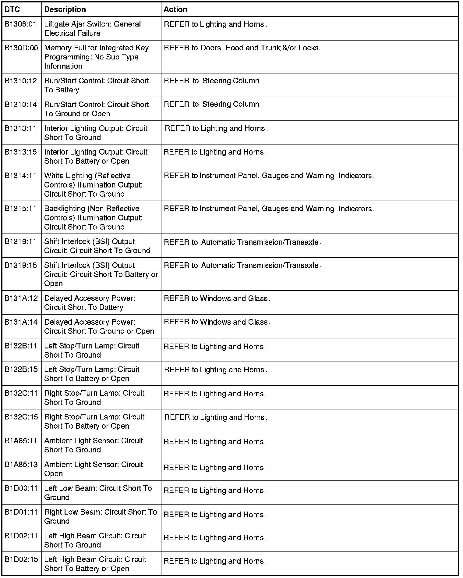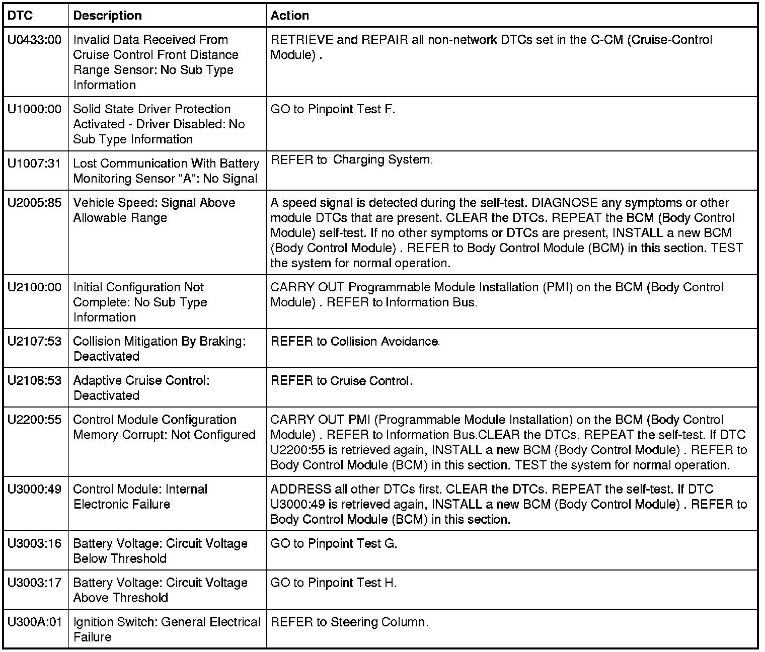 Home >> Ford >> 2011 >> Edge AWD V6-3.7L >> Repair and Diagnosis >> A L L Diagnostic Trouble Codes ( DTC ) >> Testing and Inspection >> Diagnostic Trouble Code Descriptions >> Body Control Module >> Body Control Module (BCM)