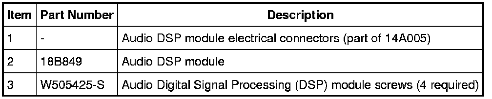 Home >> Ford >> 2011 >> Edge AWD V6-3.7L >> Repair and Diagnosis >> Accessories and Optional Equipment >> Cellular Phone >> Communications Control Module >> Service and Repair >> Removal and Replacement >> Audio Digital Signal Processing (DSP) Module