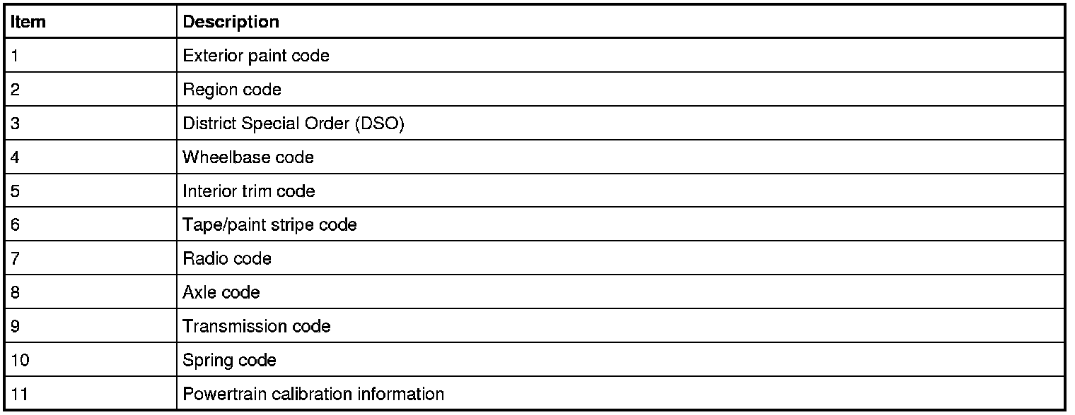 NOTE: Powertrain calibration information is limited to a maximum of 5 characters per line on the Vehicle Certification (VC) label. Because of this, calibration identification consisting of more than 5 characters will wrap to the second line on the VC (Vehicle Certification) label.