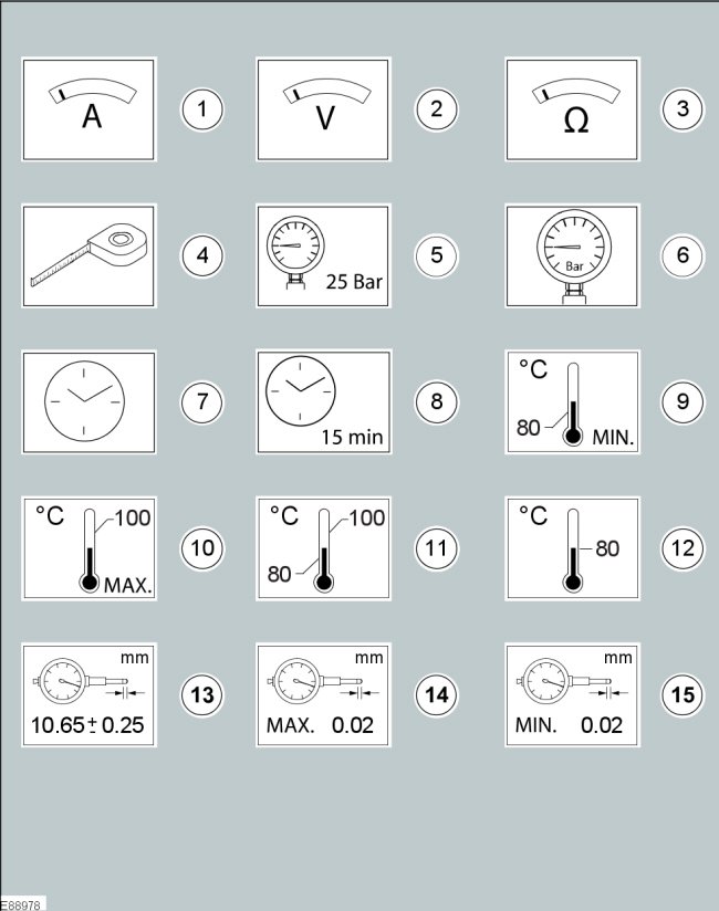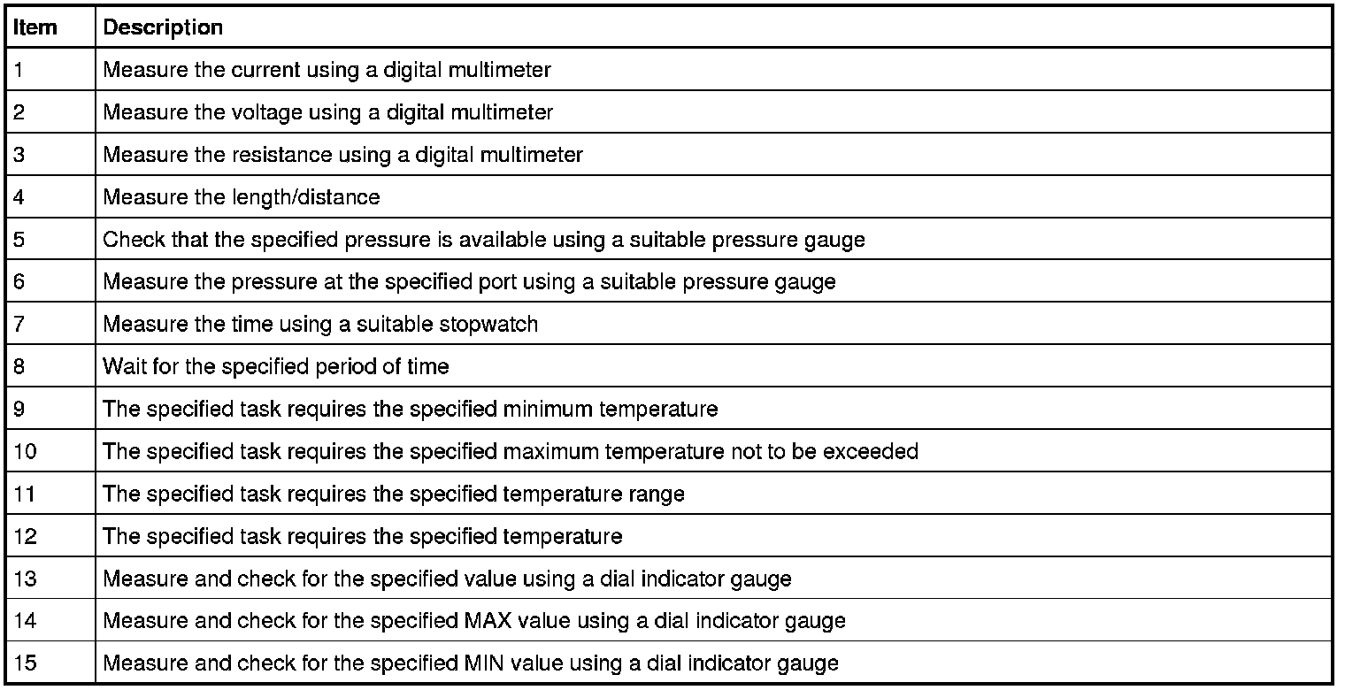 The measurement symbols are used to show where to measure which type of measurement to carry out a procedure step.
