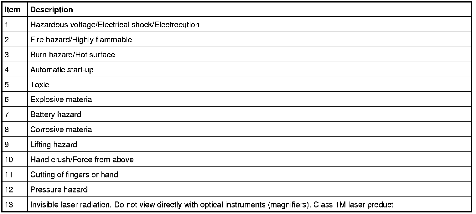 The general equipment symbols are used to show where to use which type of general equipment to carry out a procedure step.