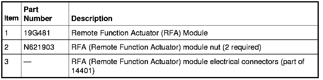 NOTE: If a new Remote Function Actuator (RFA) module is installed, the ignition does not turn on until a parameter reset is performed and 2 keys are programmed.