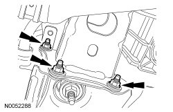 7. Remove the 3 RH subframe-to-lower bumper nuts and washers.
