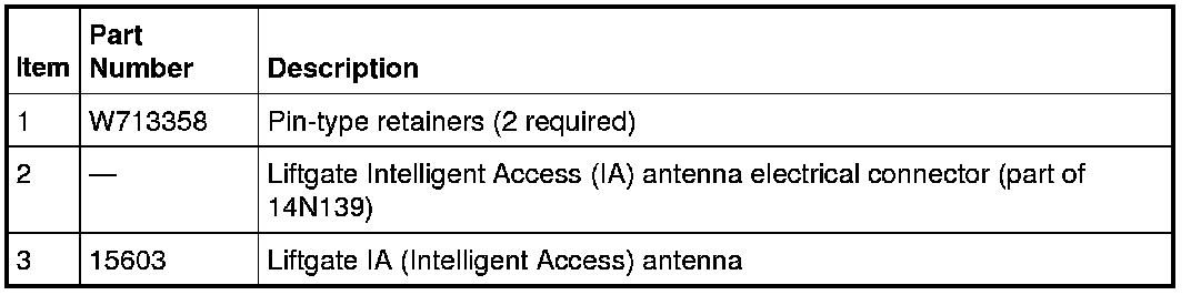 3. Remove the 2 pin-type retainers and the liftgate IA (Intelligent Access) antenna.