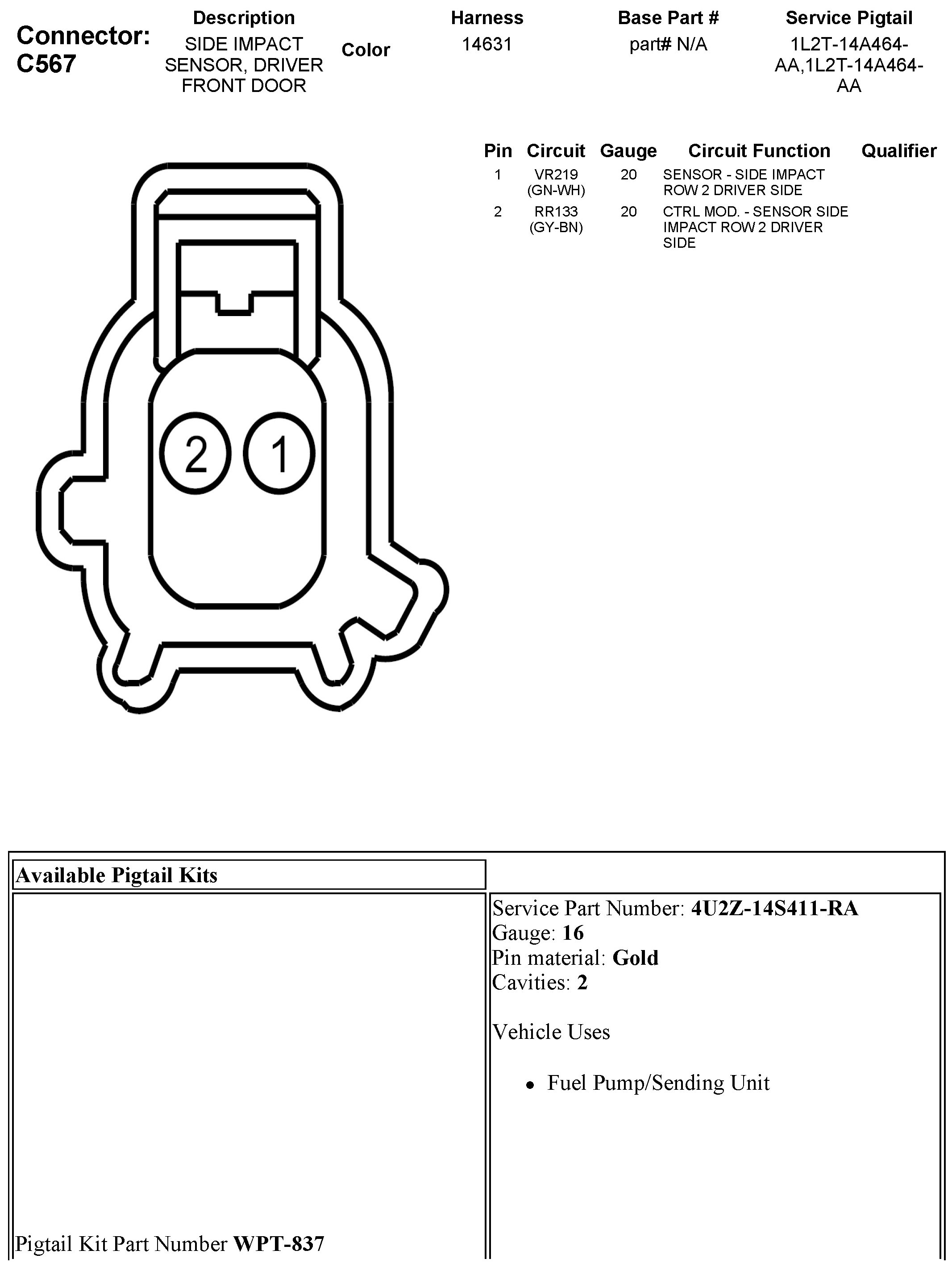 C567 Side Impact Sensor, Driver Front Door