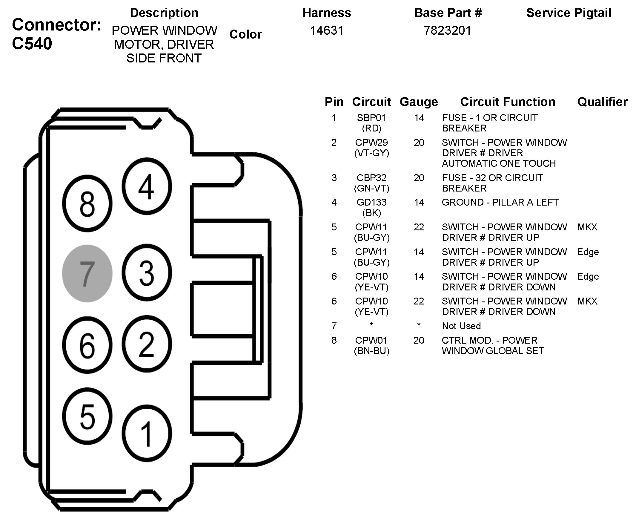 C540 Power Window Motor, Driver Side Front