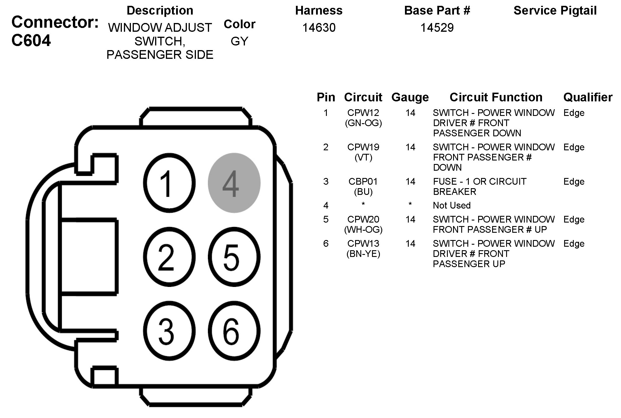 C604 Window Adjust Switch, Passenger Side