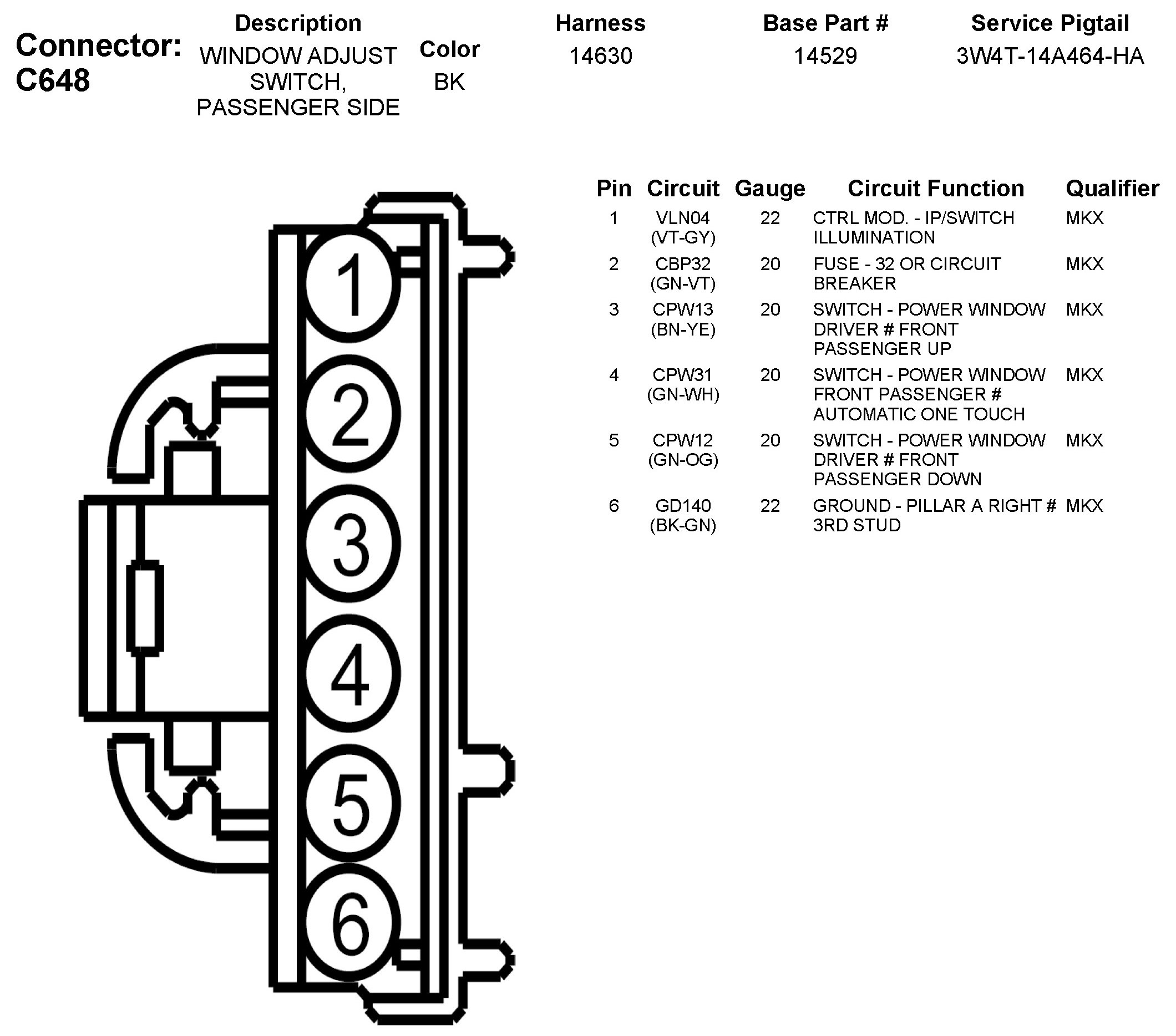 C648 Window Adjust Switch, Passenger Side