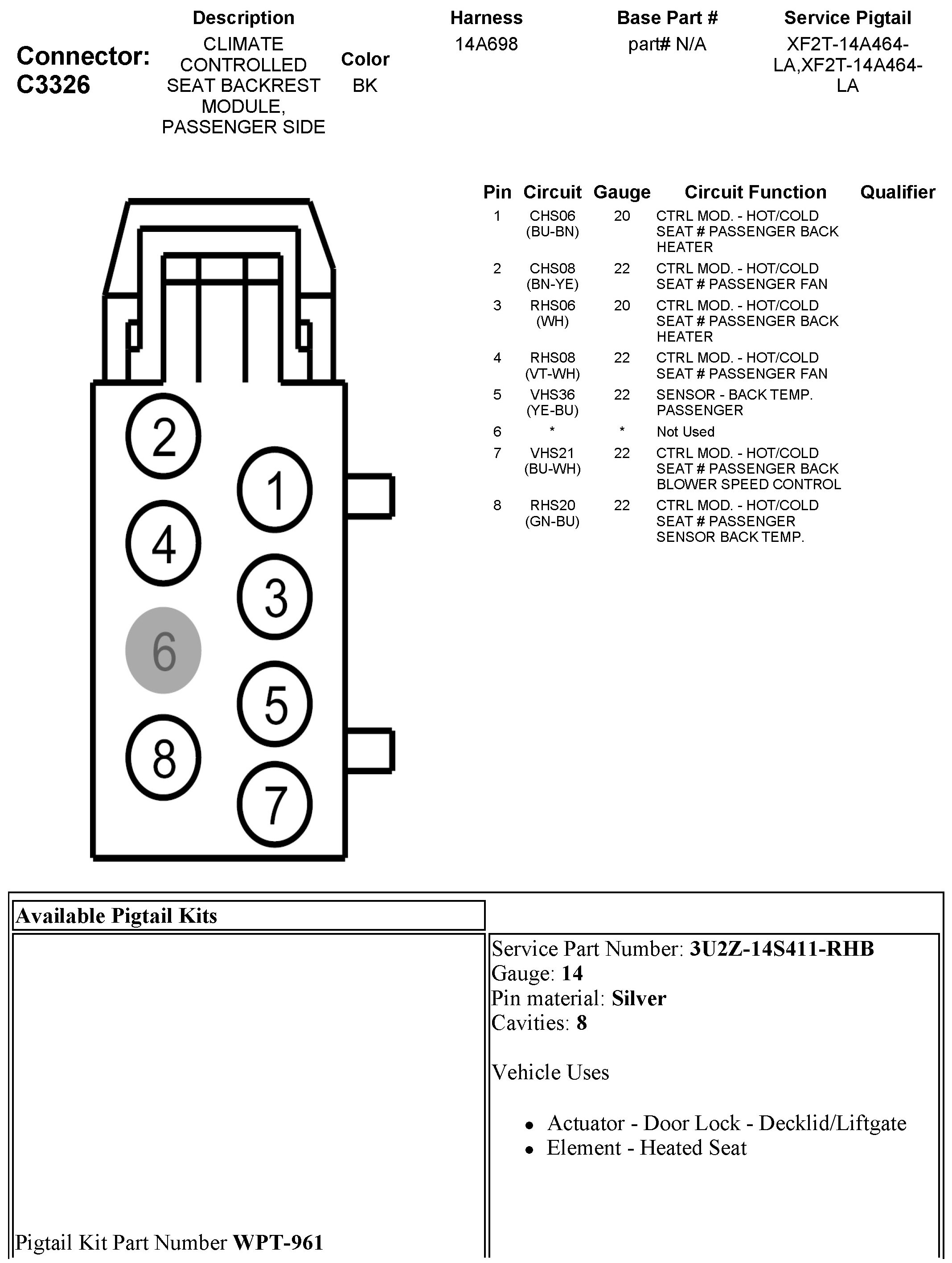 C3326 Climate Controlled Seat Backrest Module, Passenger Side