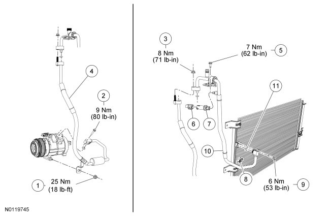 1. NOTE: The O-ring seals used on this vehicle are not interchangeable with all similarly sized O-ring seals used on other Ford products. Use only the O-ring seals that are specified for this vehicle. Refer to the Ford Catalog Advantage(TM).