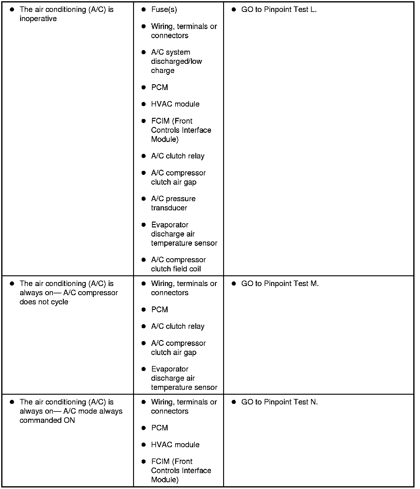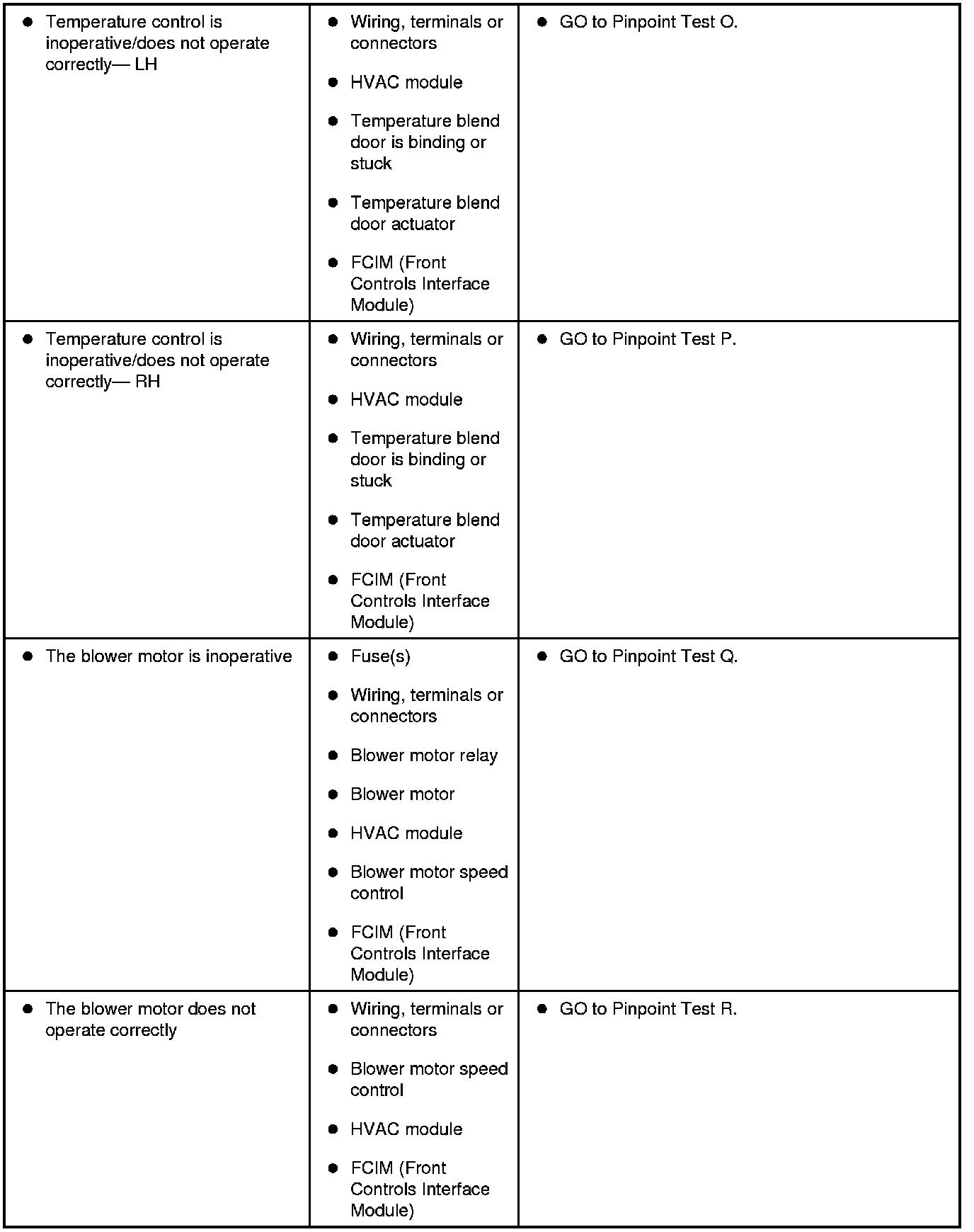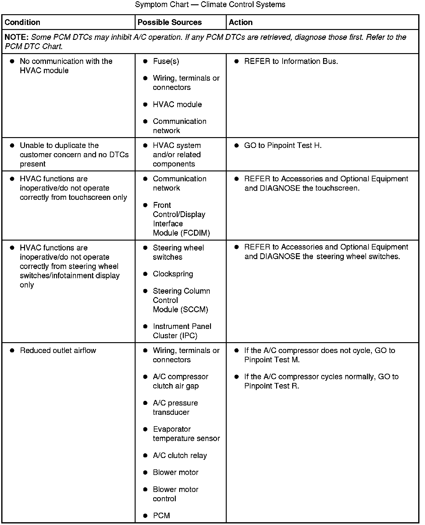Symptom Chart - Climate Control Systems