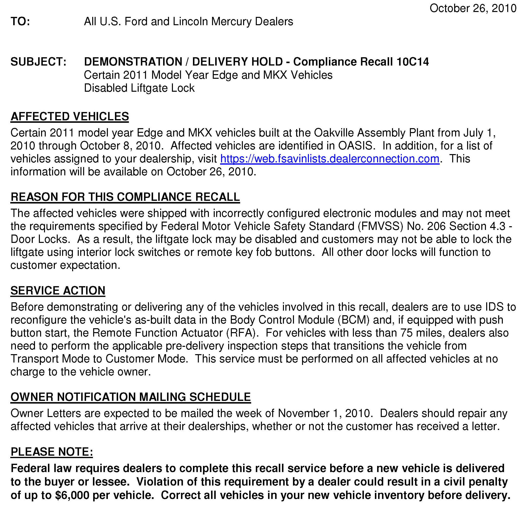 Recall - Liftgate Lock Non-Compliance