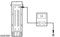 - Measure the resistance between the ABS module C135-16, circuit GD121 (BK/YE), harness side and ground.