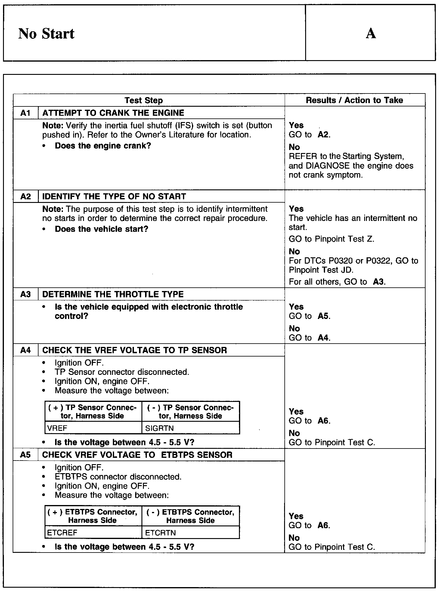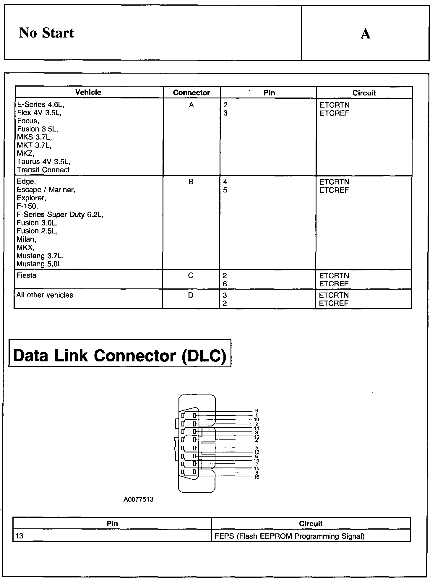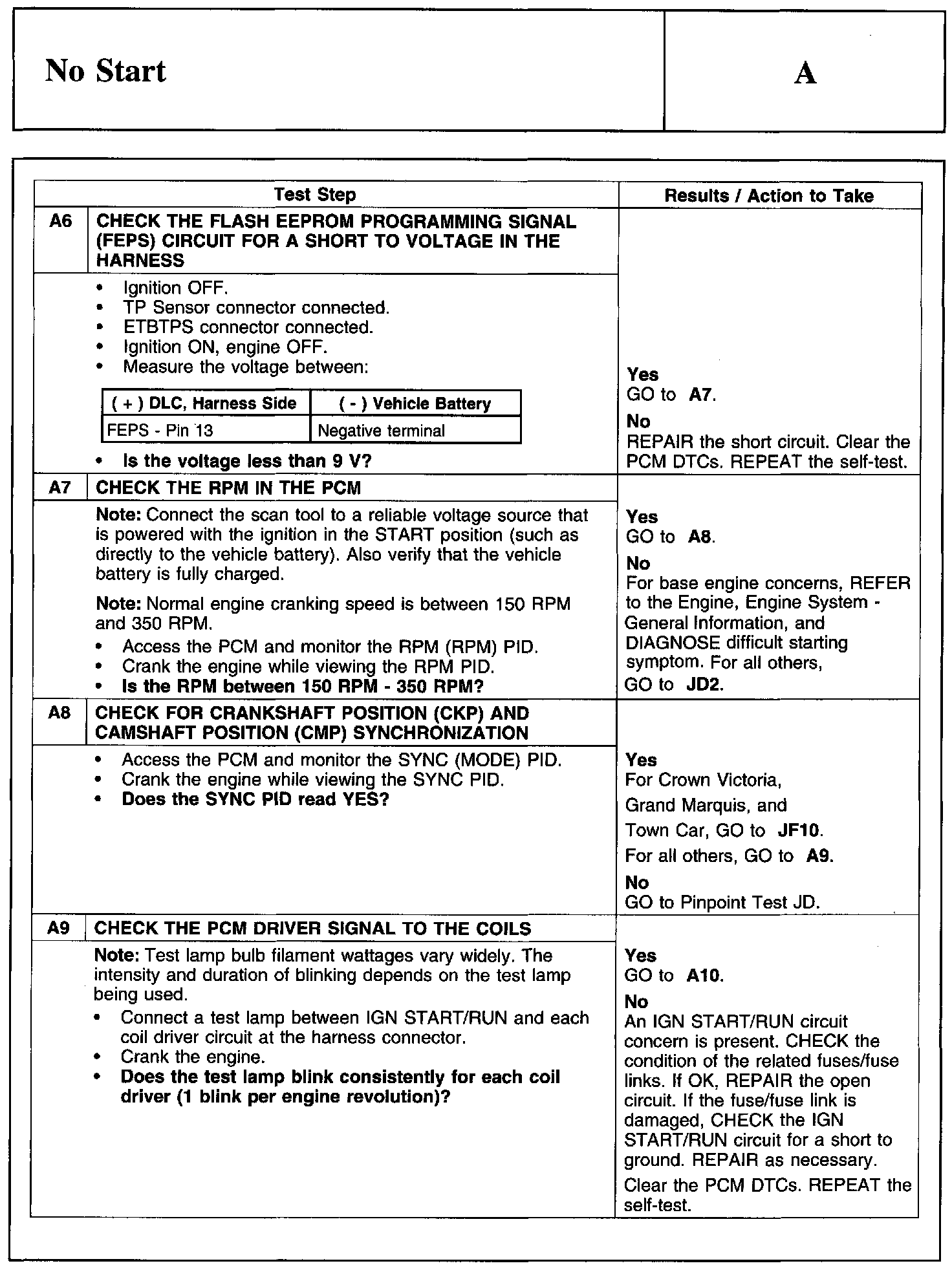 Home >> Ford >> 2011 >> Edge AWD V6-3.7L >> Repair and Diagnosis >> Powertrain Management >> Computers and Control Systems >> Testing and Inspection >> Pinpoint Tests >> Test A: No Start