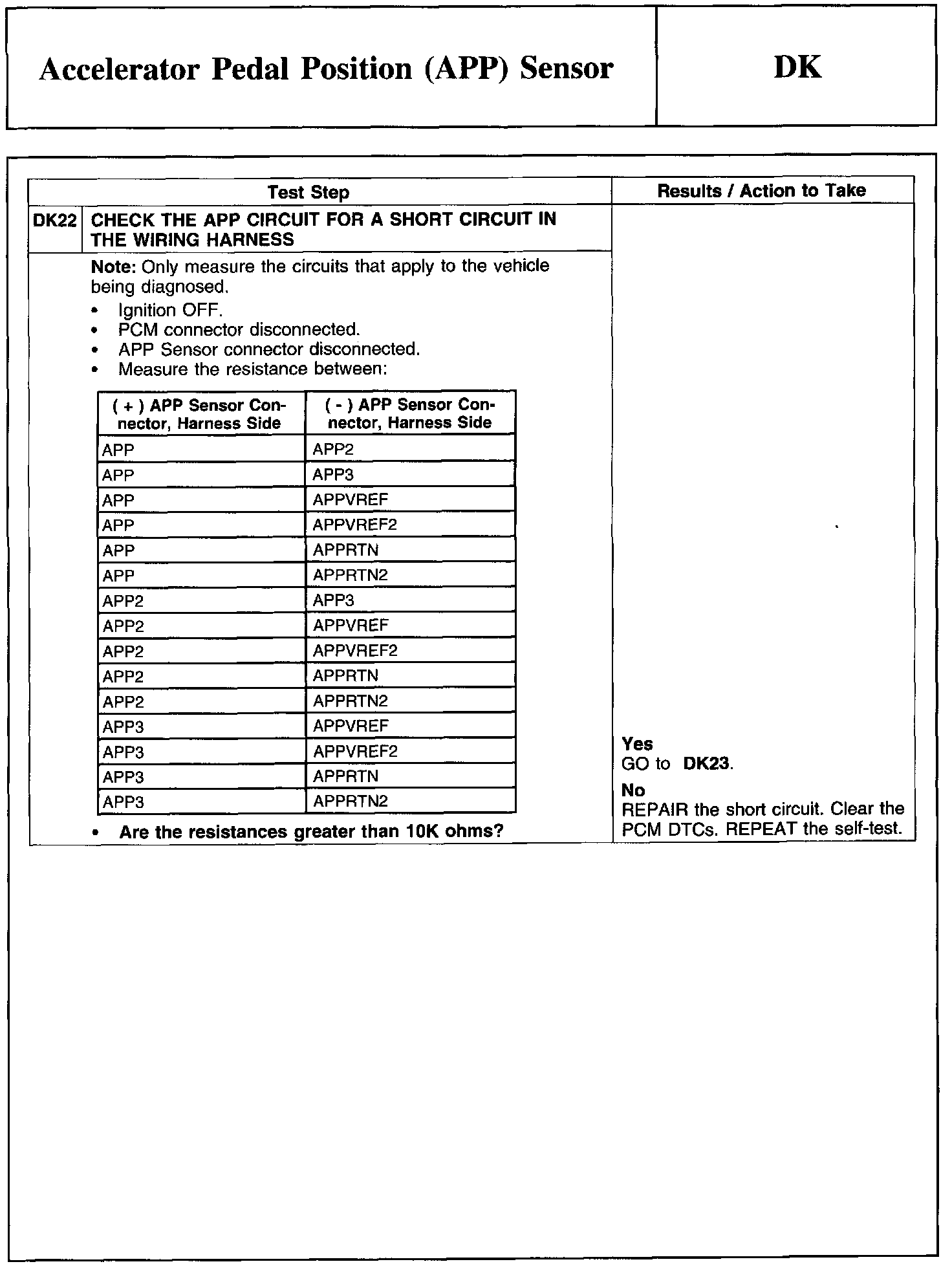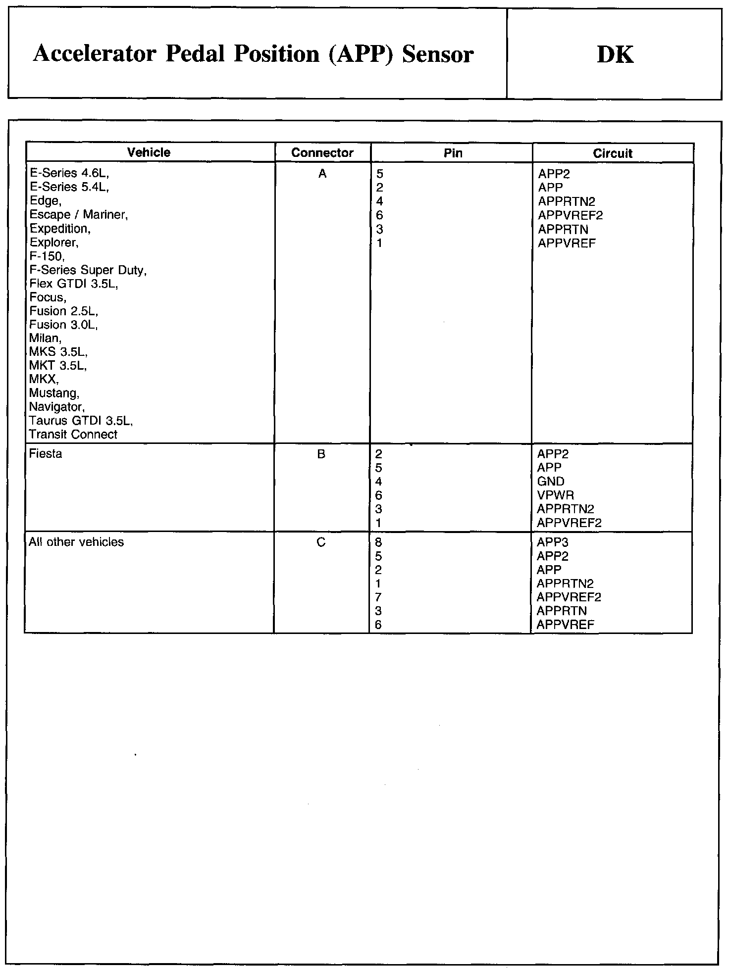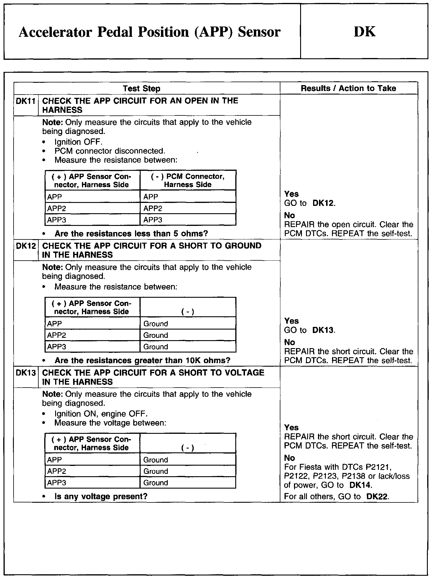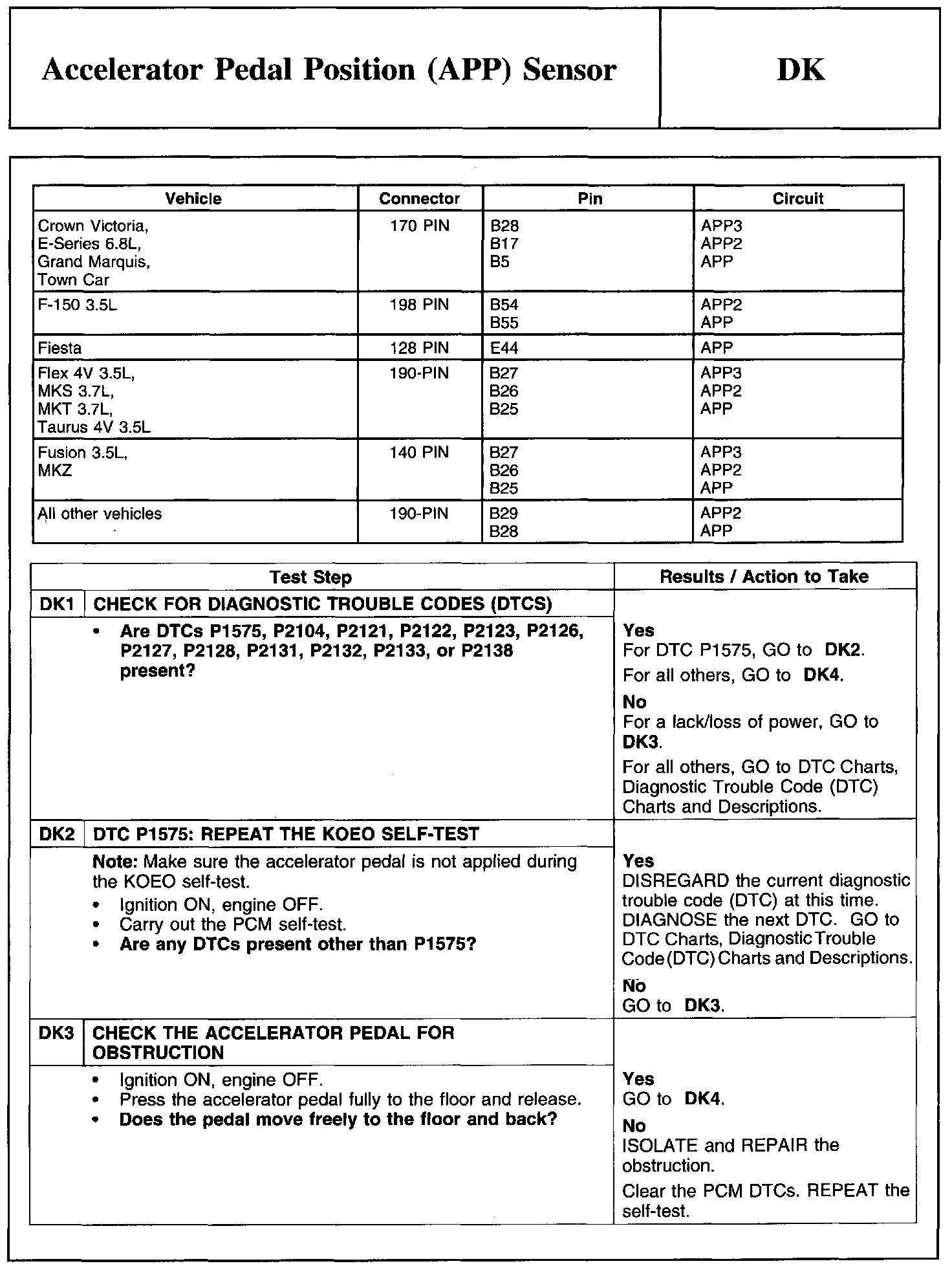 PINPOINT TEST DK: ACCELERATOR PEDAL POSITION (APP) SENSOR