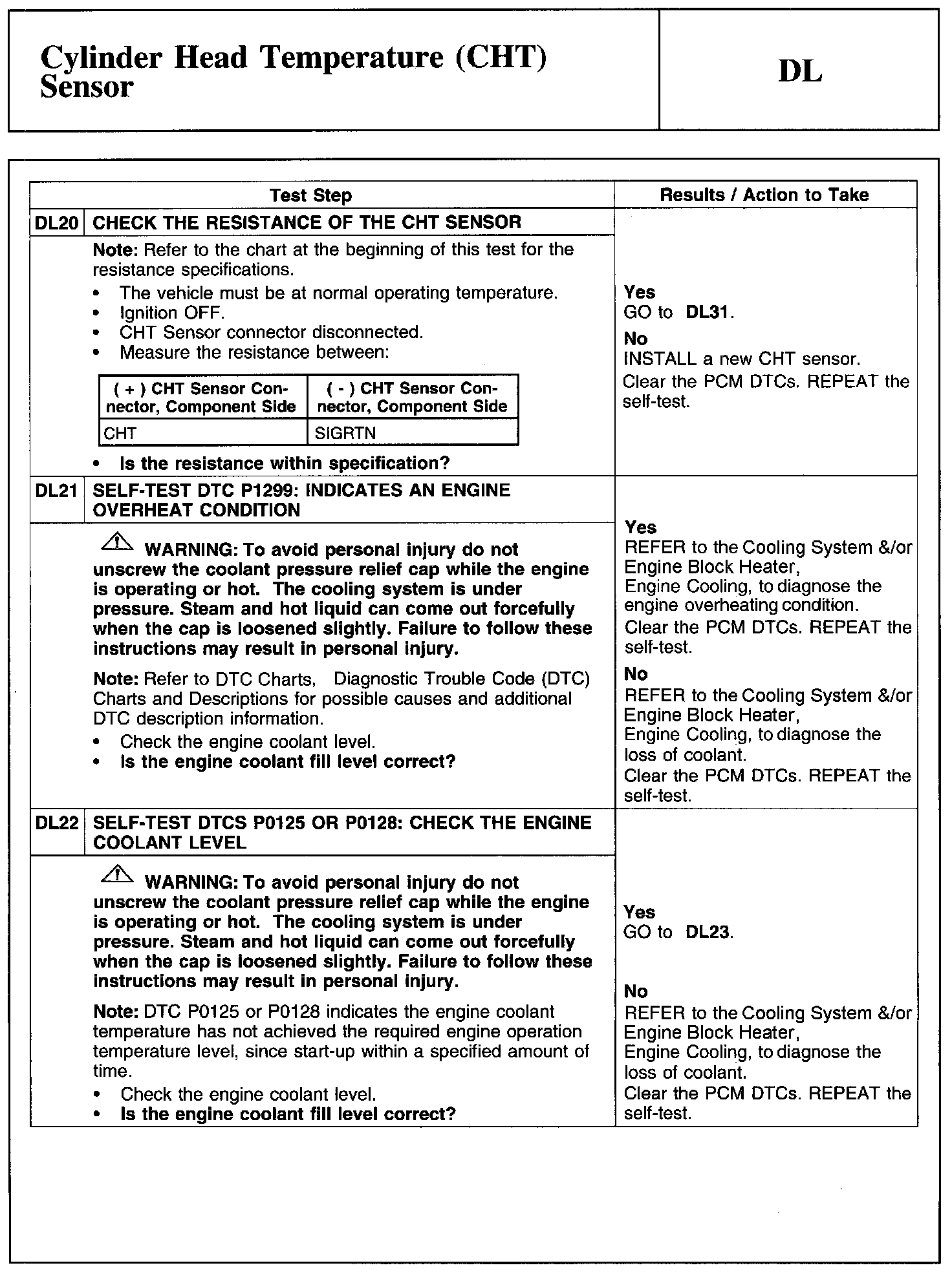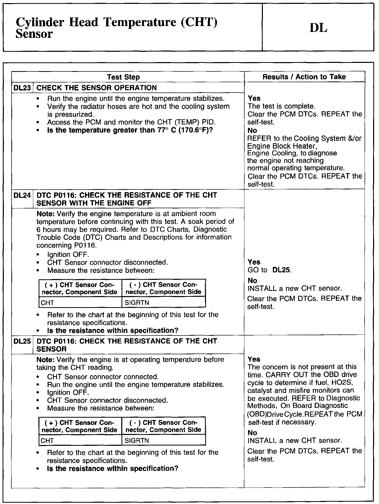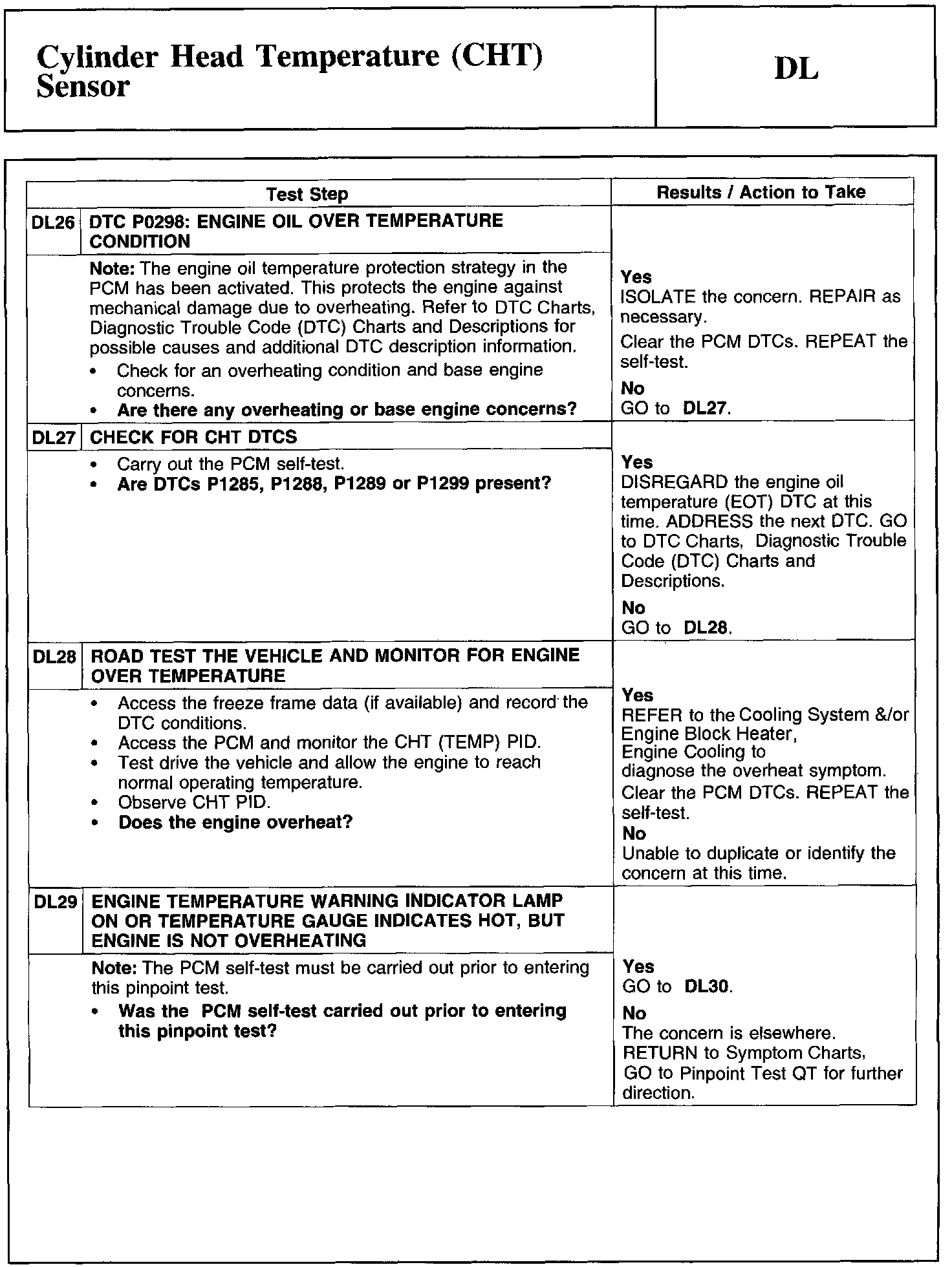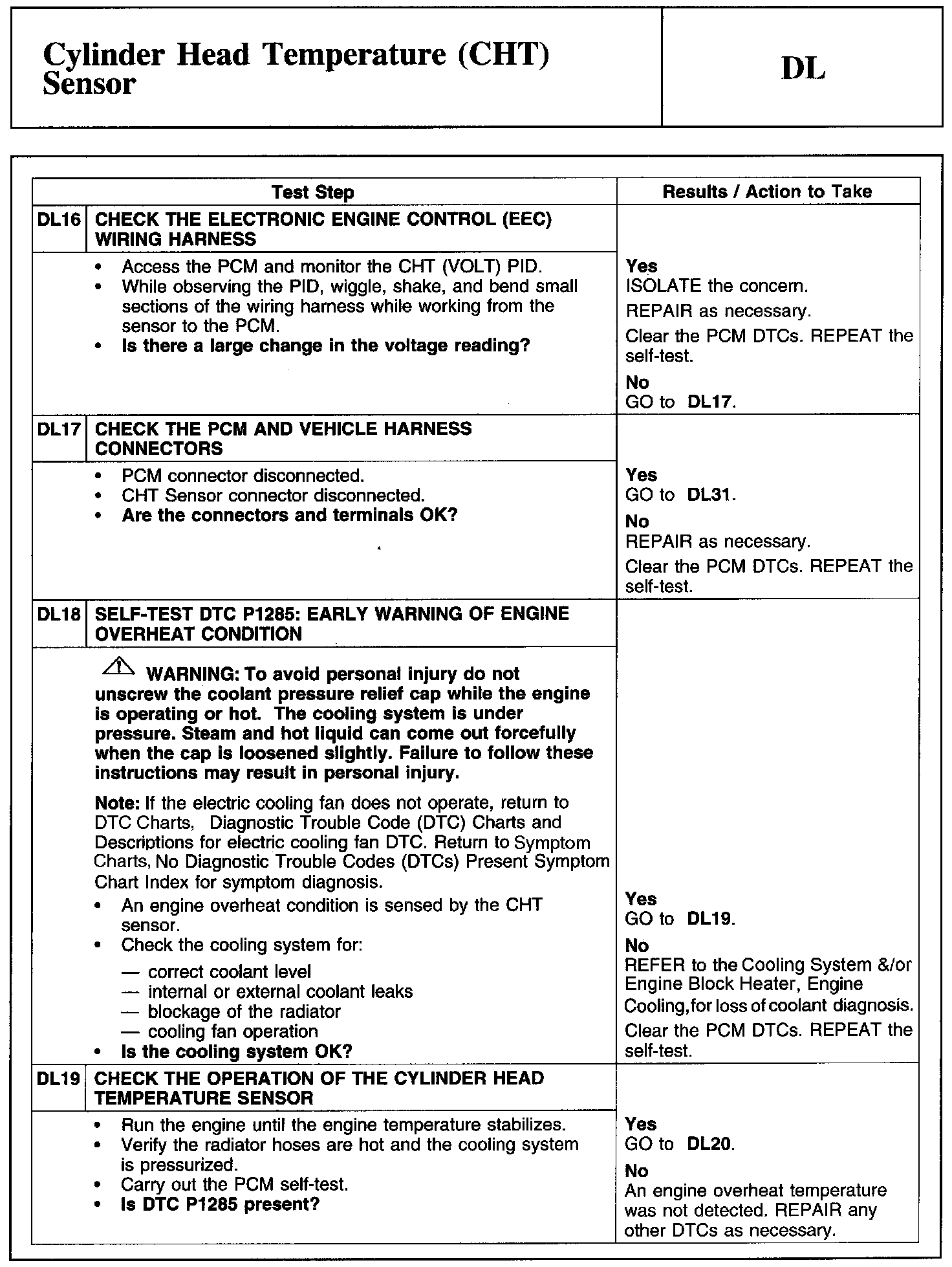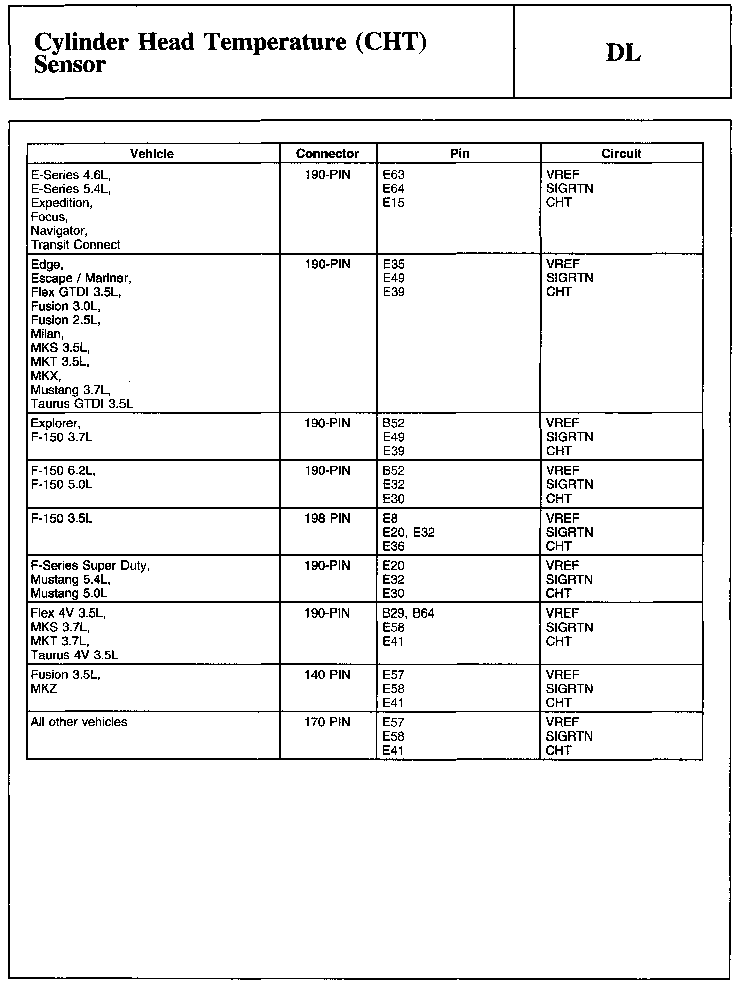 Home >> Ford >> 2011 >> Edge AWD V6-3.7L >> Repair and Diagnosis >> Powertrain Management >> Computers and Control Systems >> Testing and Inspection >> Pinpoint Tests >> Test DL: Cylinder Head Temperature (CHT) Sensor