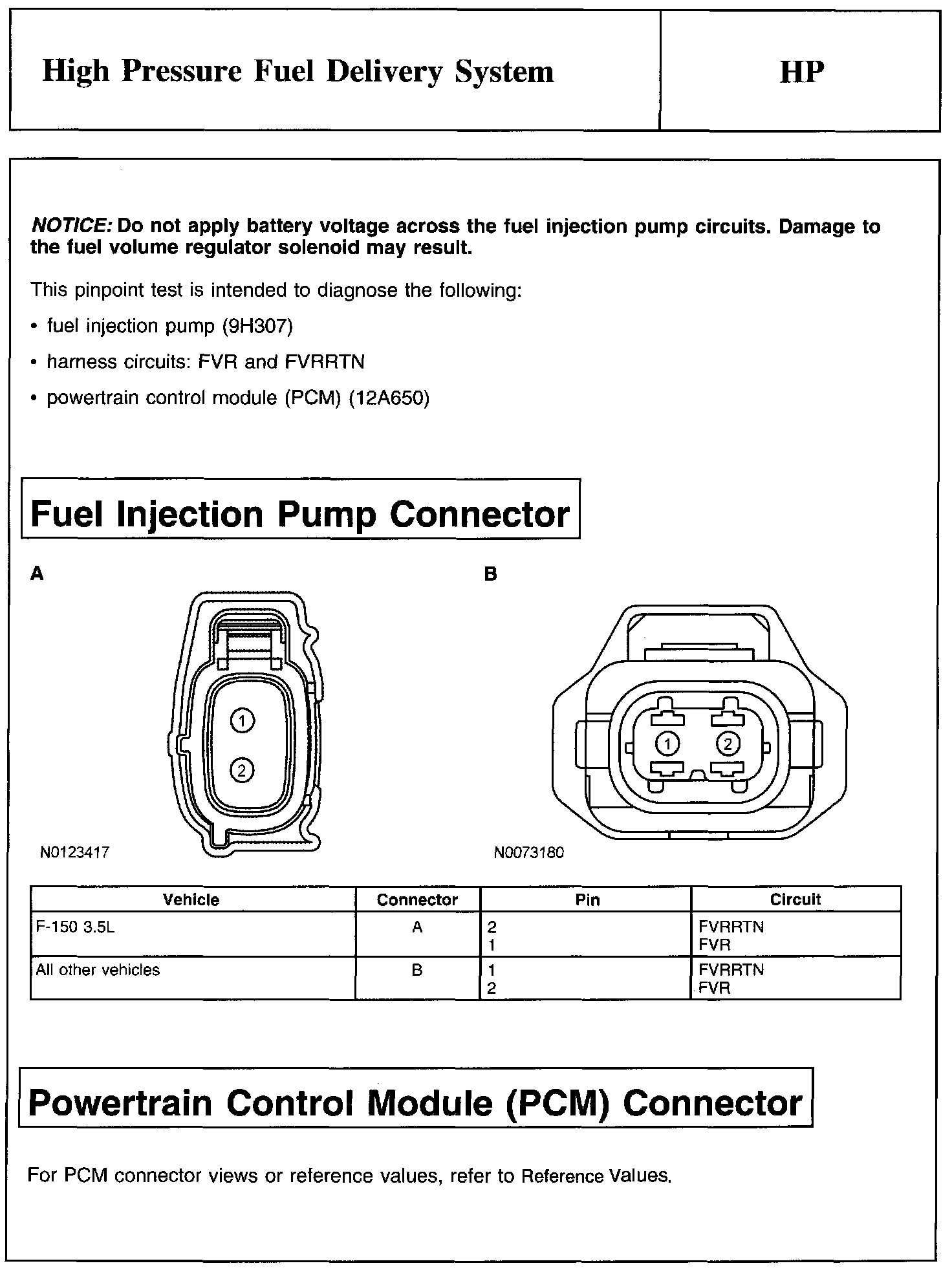 Notice, Fuel Injection Pump Connector And Powertrain Control Module (PCM) Connector: