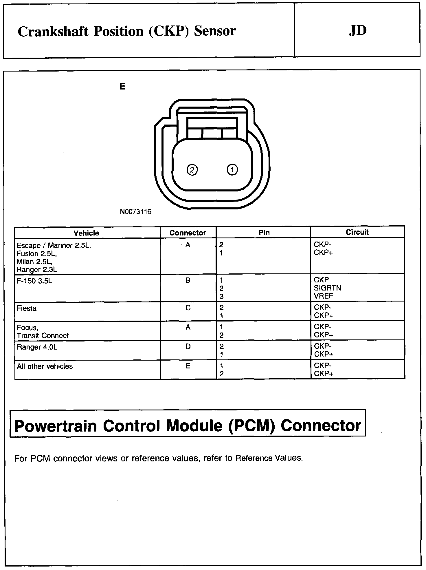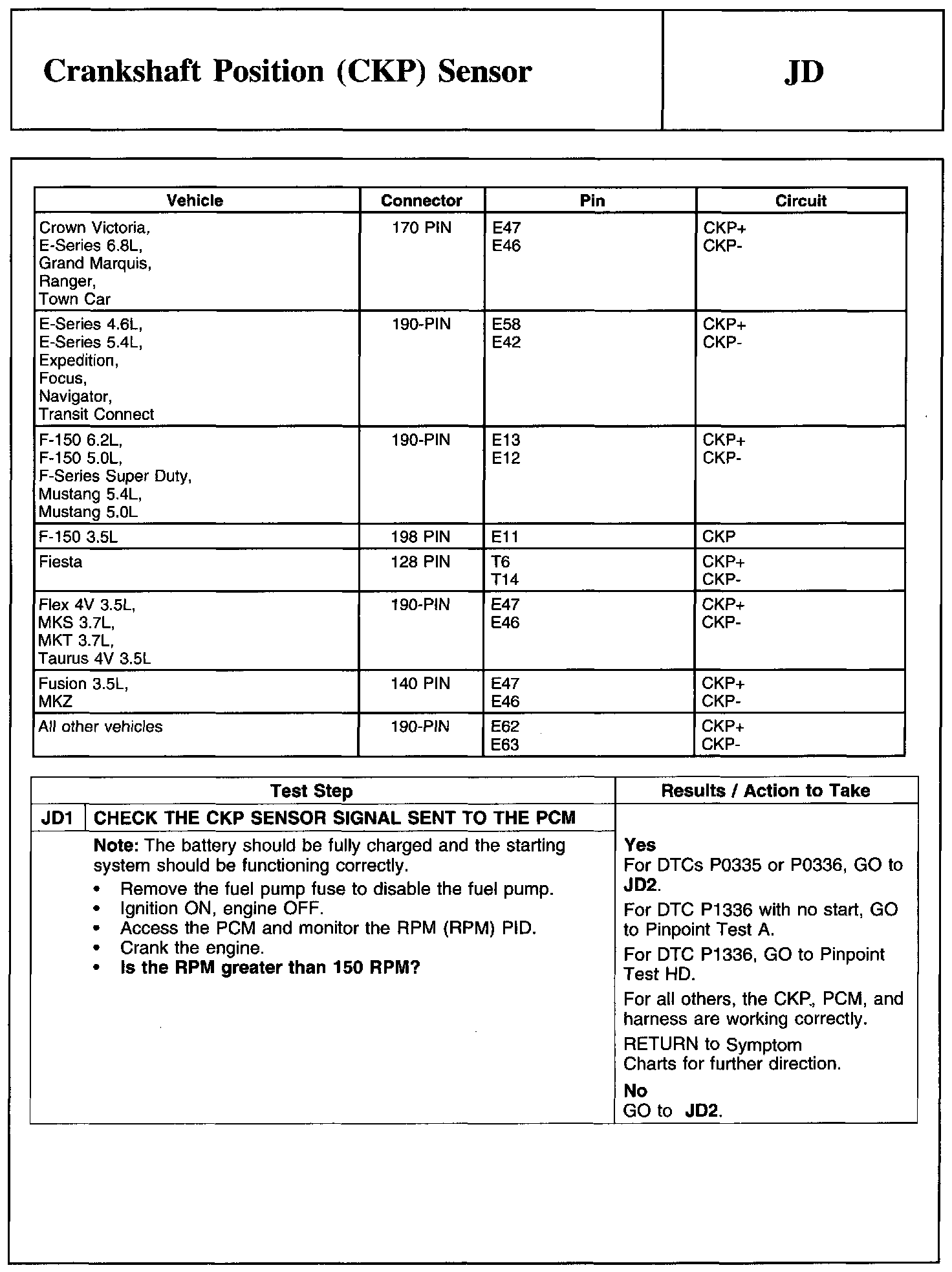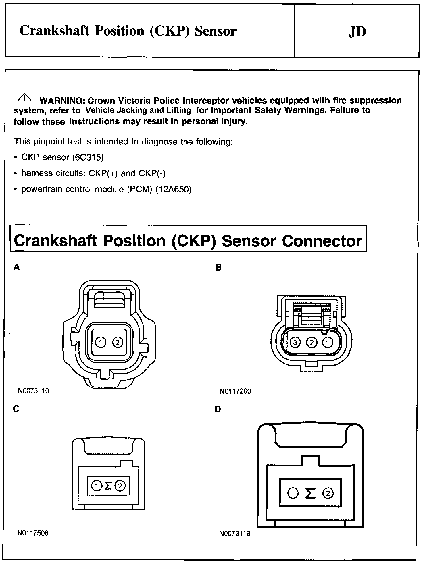 PINPOINT TEST JD: CRANKSHAFT POSITION (CKP) SENSORWarning And Crankshaft Position (CKP) Sensor Connector: