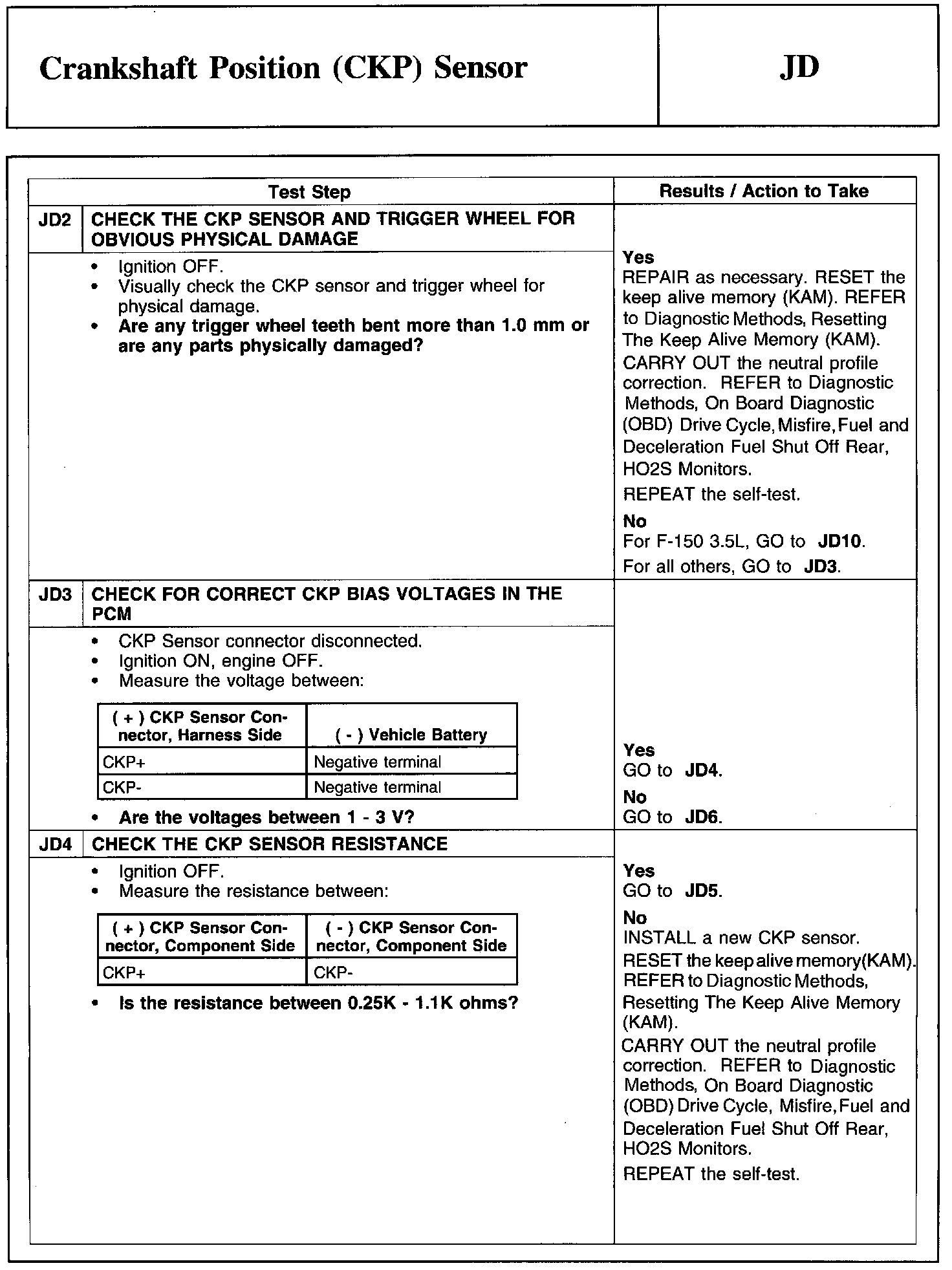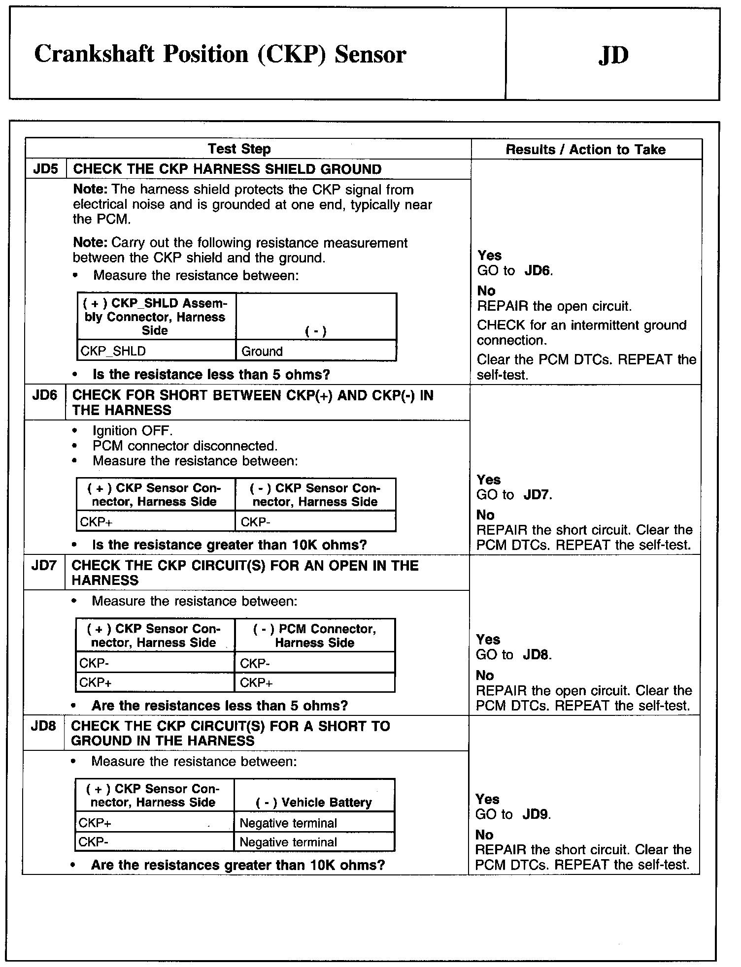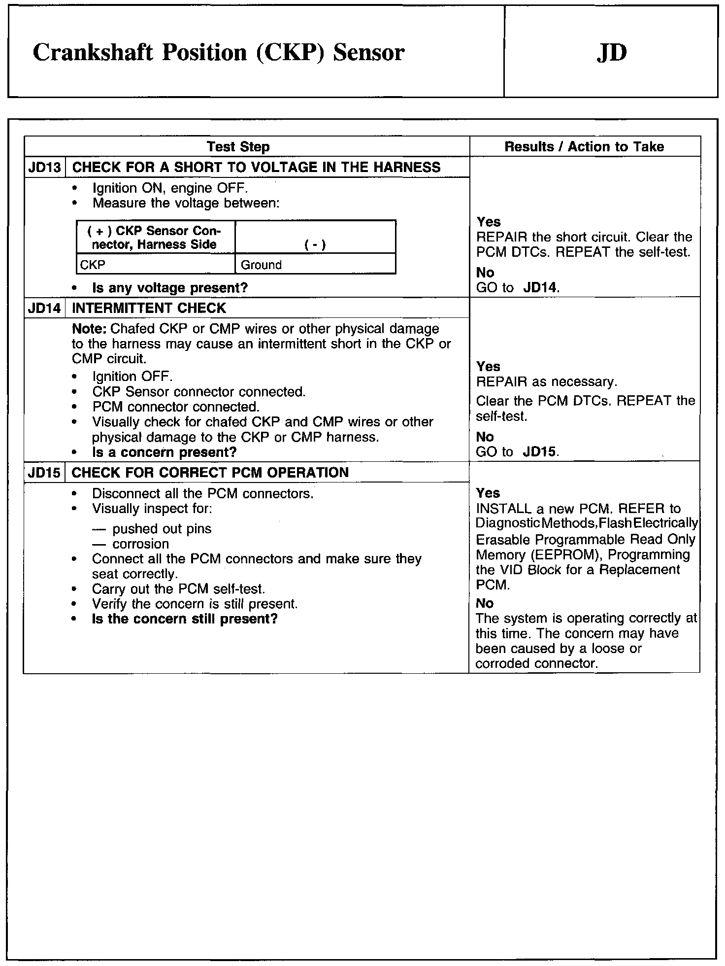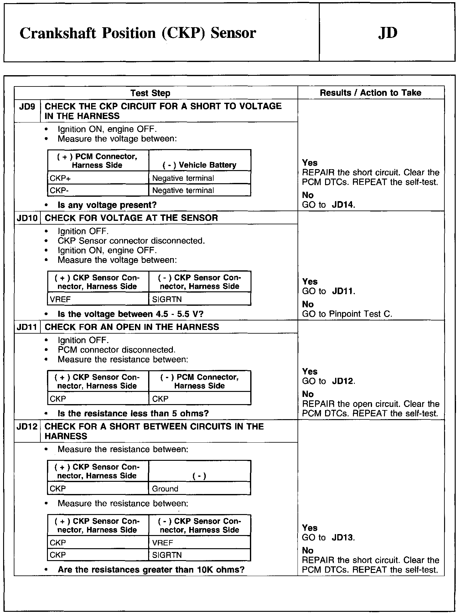 PINPOINT TEST JD: CRANKSHAFT POSITION (CKP) SENSORWarning And Crankshaft Position (CKP) Sensor Connector: