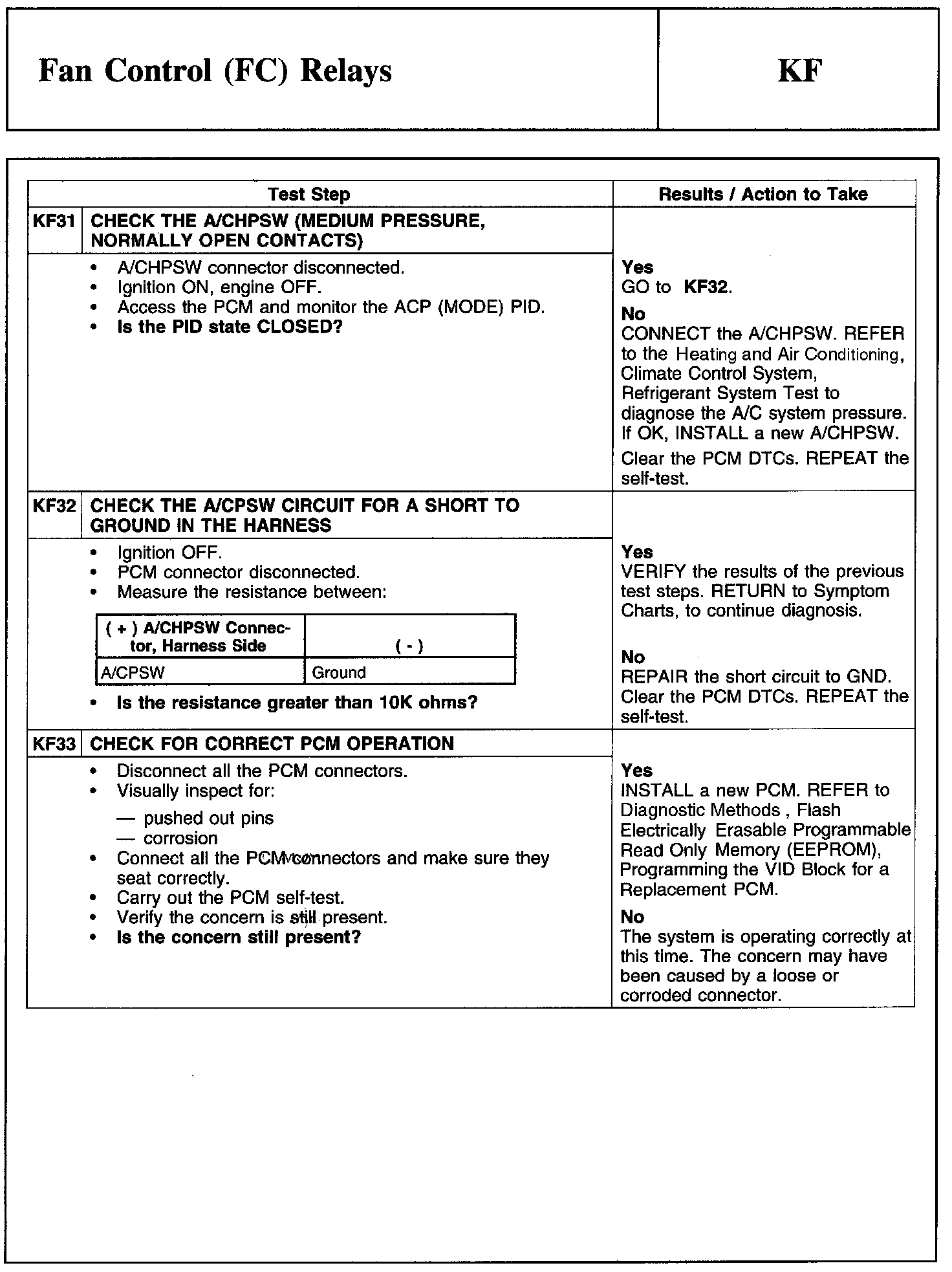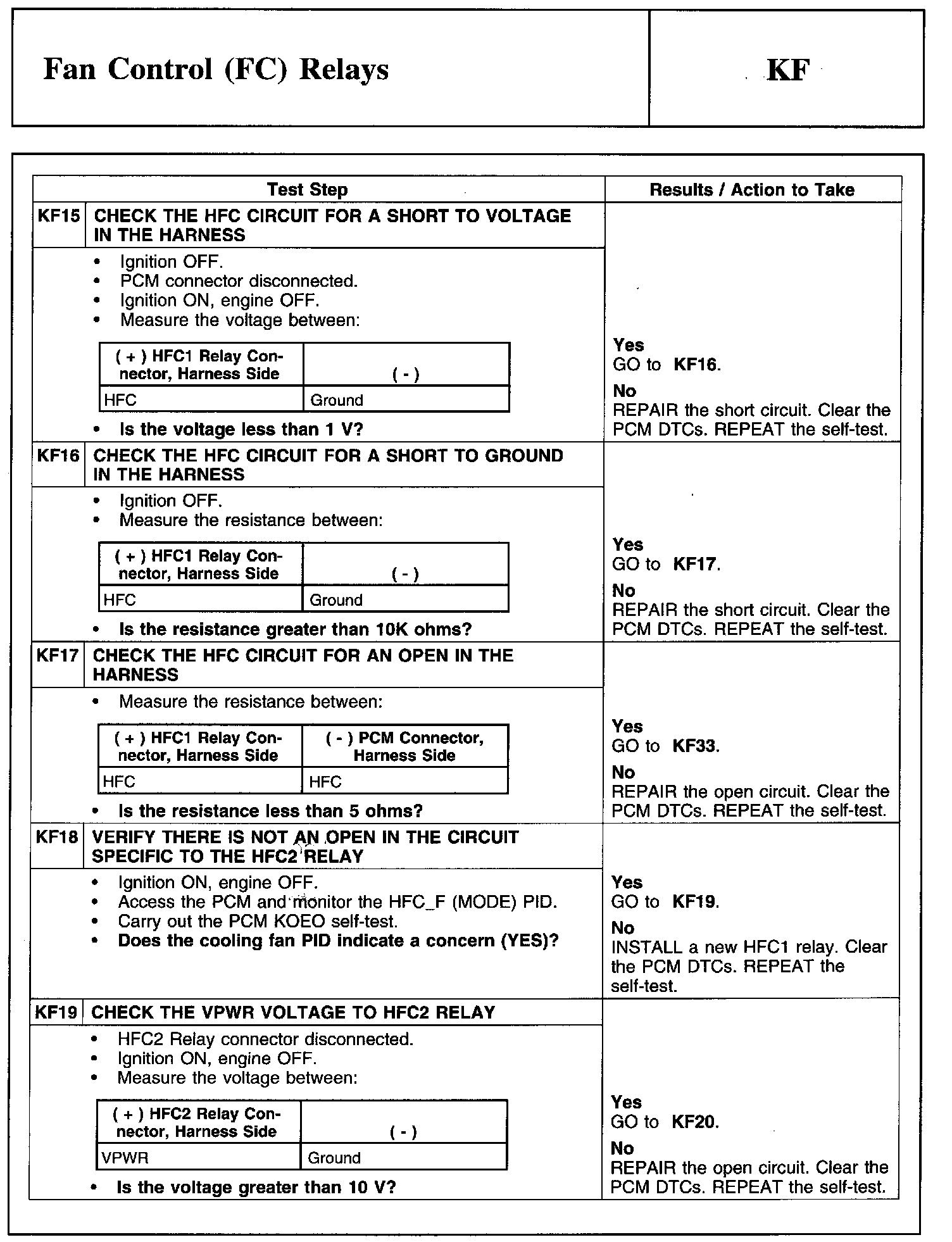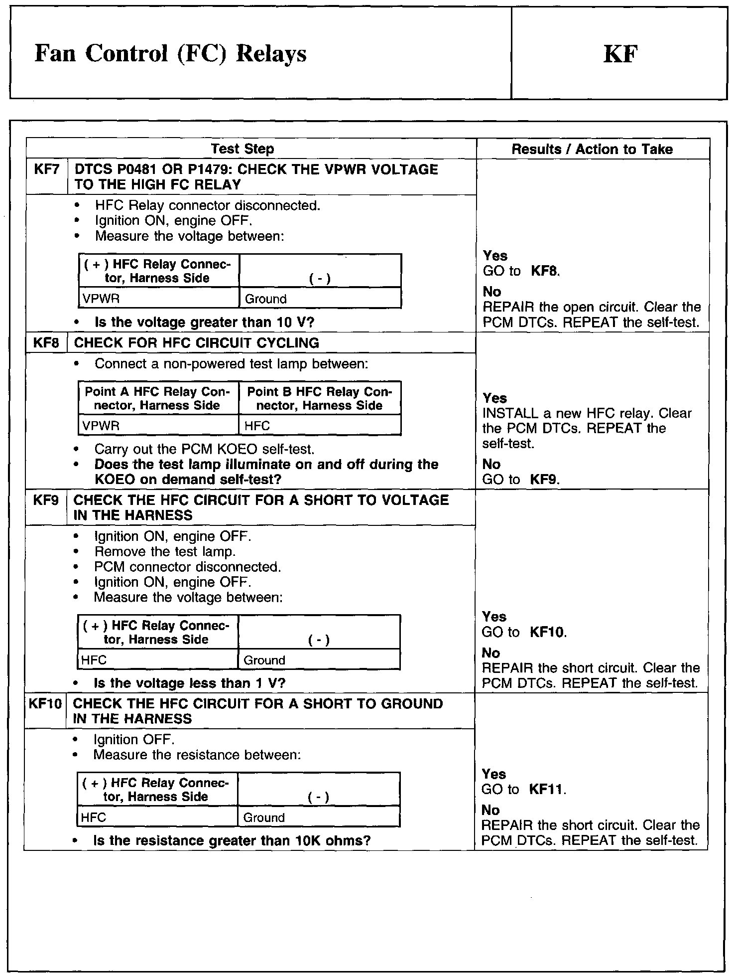 PINPOINT TEST KF: FAN CONTROL (FC) RELAYS