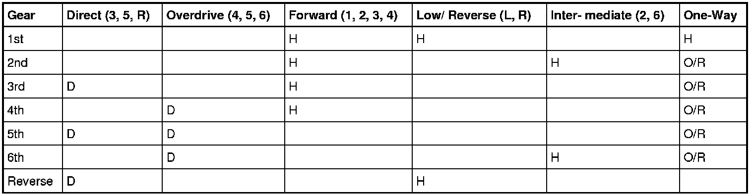 Clutch Application Chart