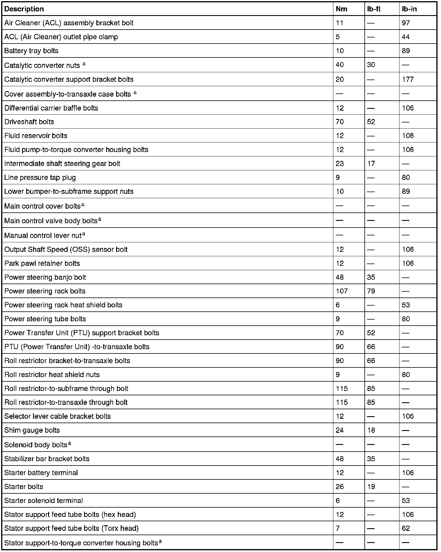 Torque Specifications