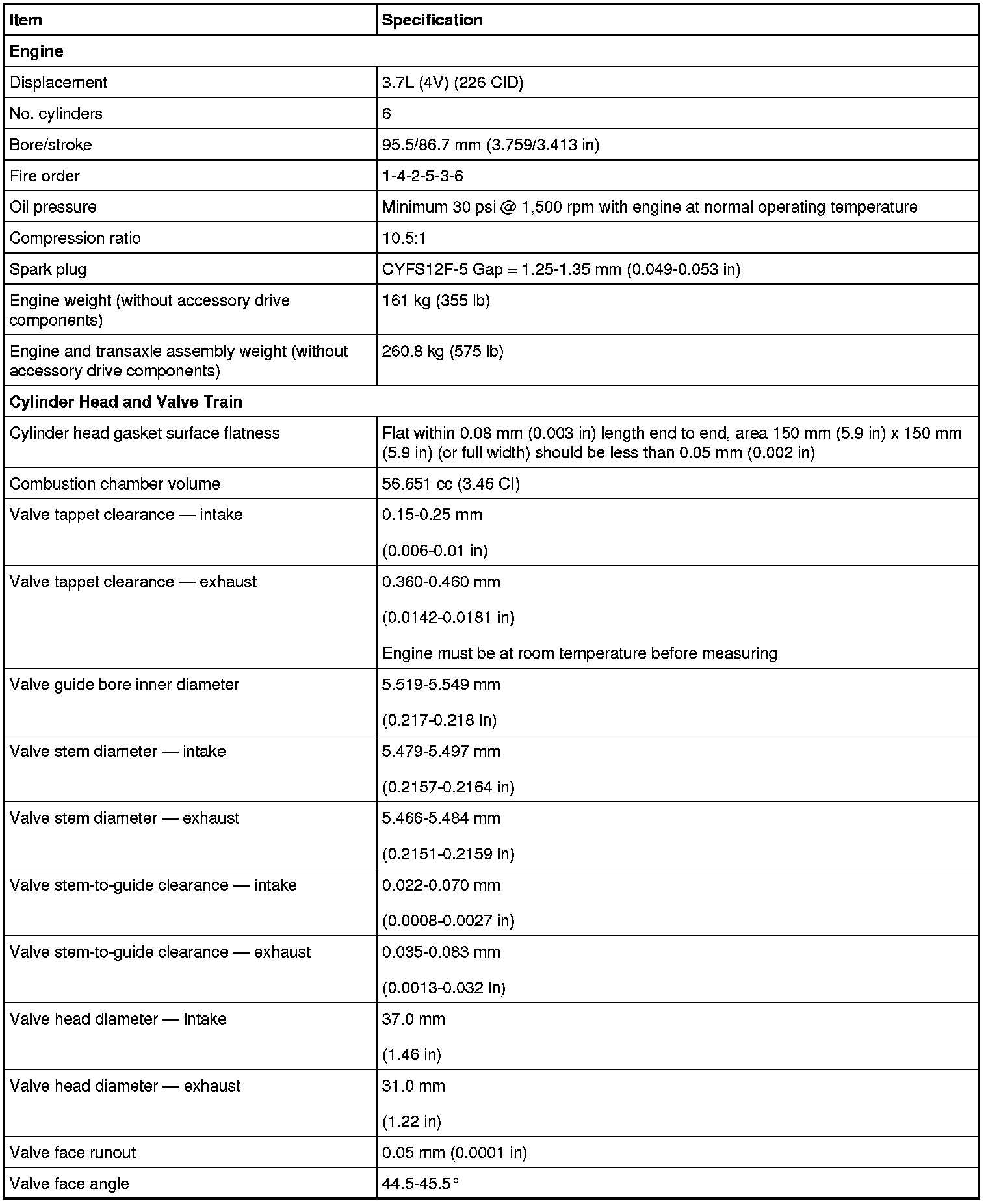 Home >> Ford >> 2011 >> Edge AWD V6-3.7L >> Repair and Diagnosis >> Specifications >> Mechanical Specifications >> Engine >> System Specifications