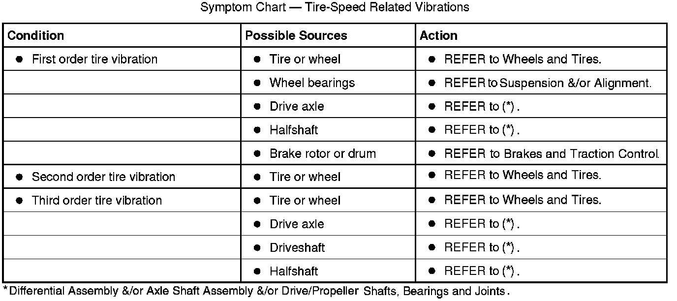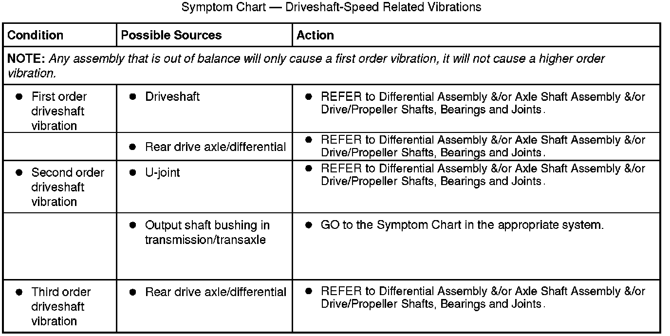Symptom Chart - Driveshaft-Speed Related Vibrations