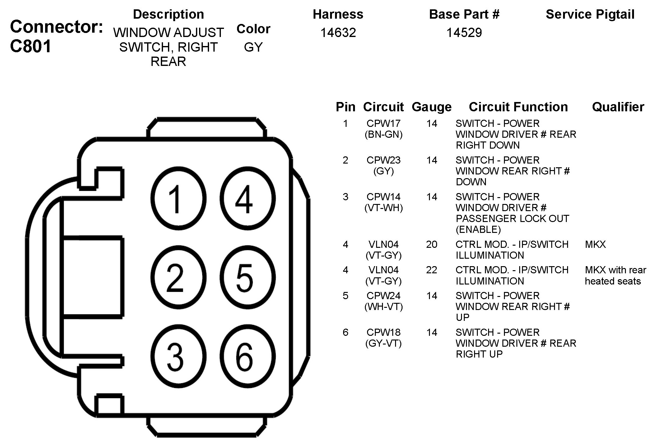 C801 Window Adjust Switch, Right Rear