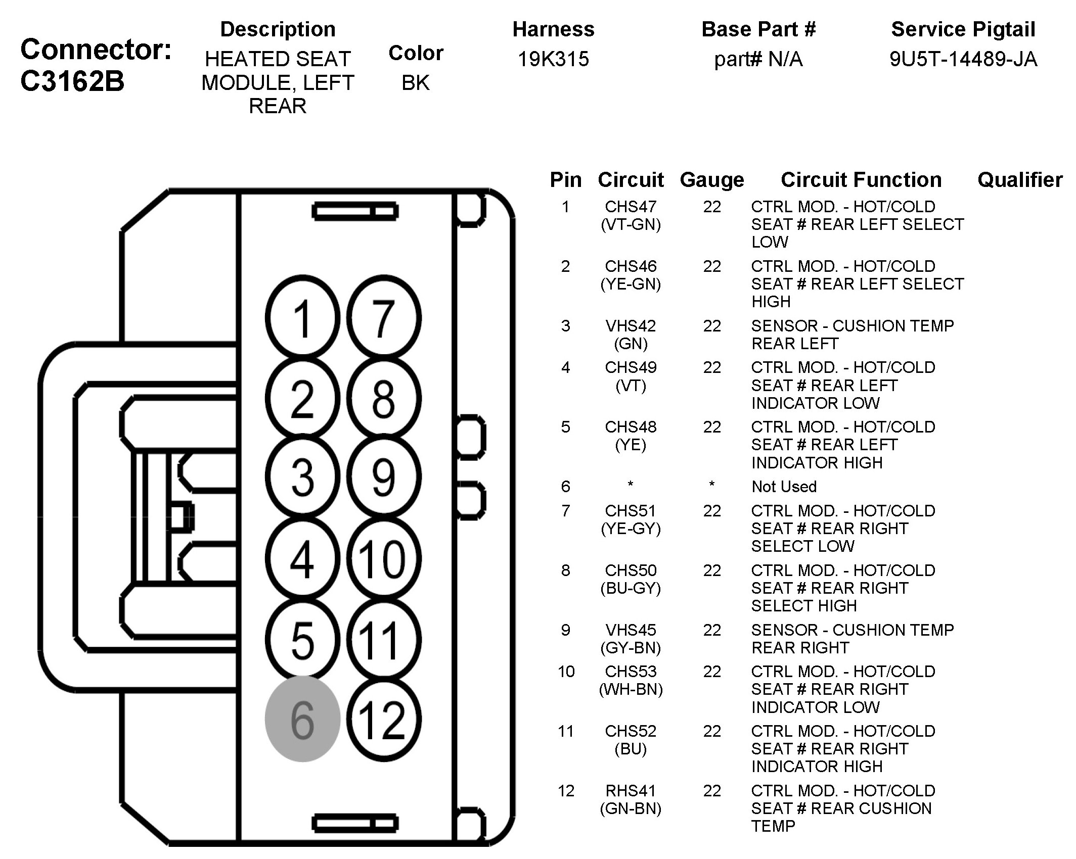 C3162B Heated Seat Module, Left Rear